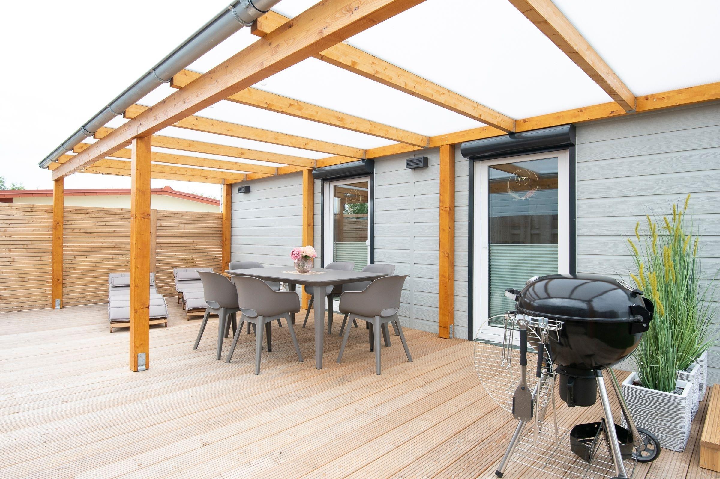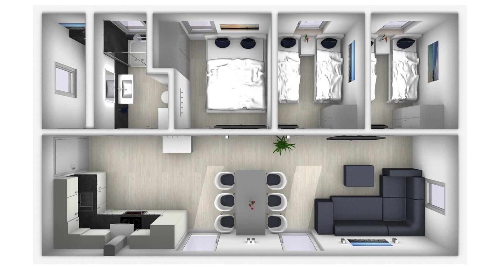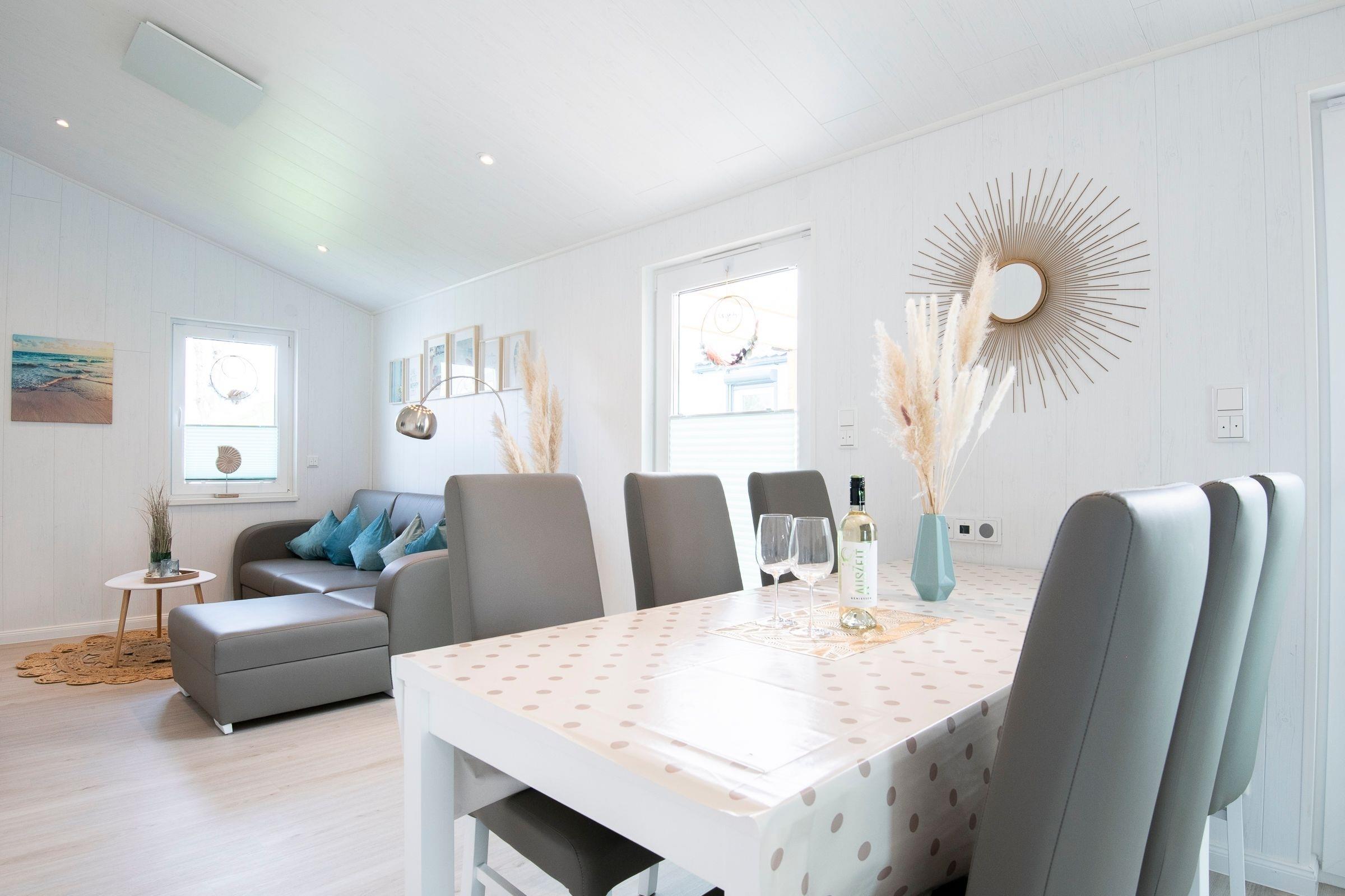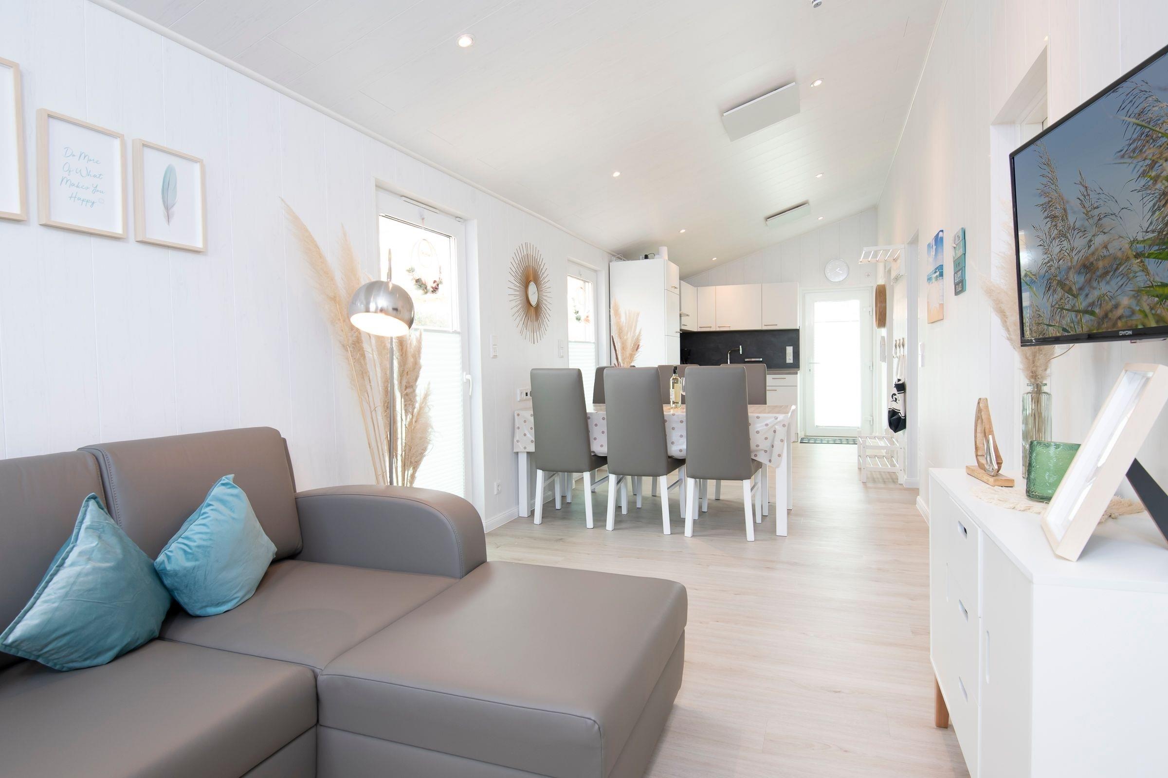 Das schöne Modulhaus Meeresrauschen bietet auf einer Wohnfläche von ca. 60 m² ausreichend Platz und Komfort für bis zu 6 Personen.