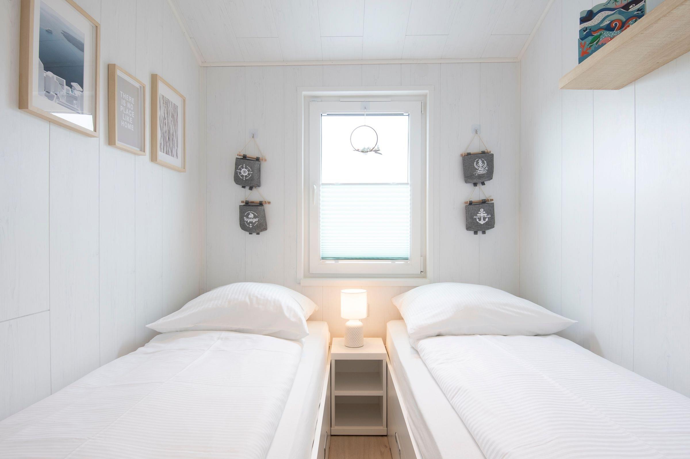 Schlafzimmer 2: 2 Einzelbetten (je 80x190 cm), Kleiderschrank, Smart TV, Plissee und Außenrollos