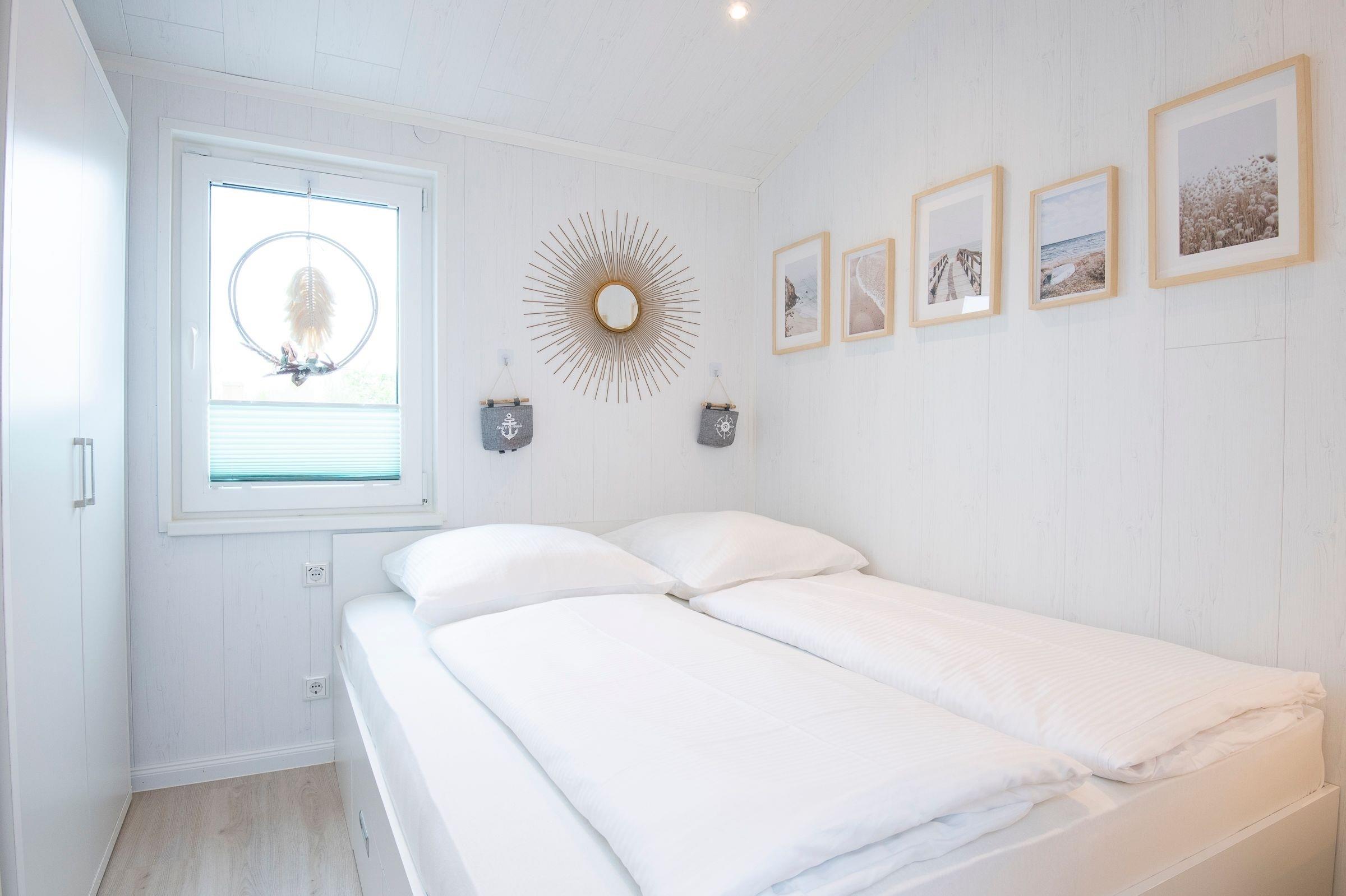 Schlafzimmer 1: 1 Doppelbett (160x200 cm), Kleiderschrank, Smart TV, Plissee und Außenrollos