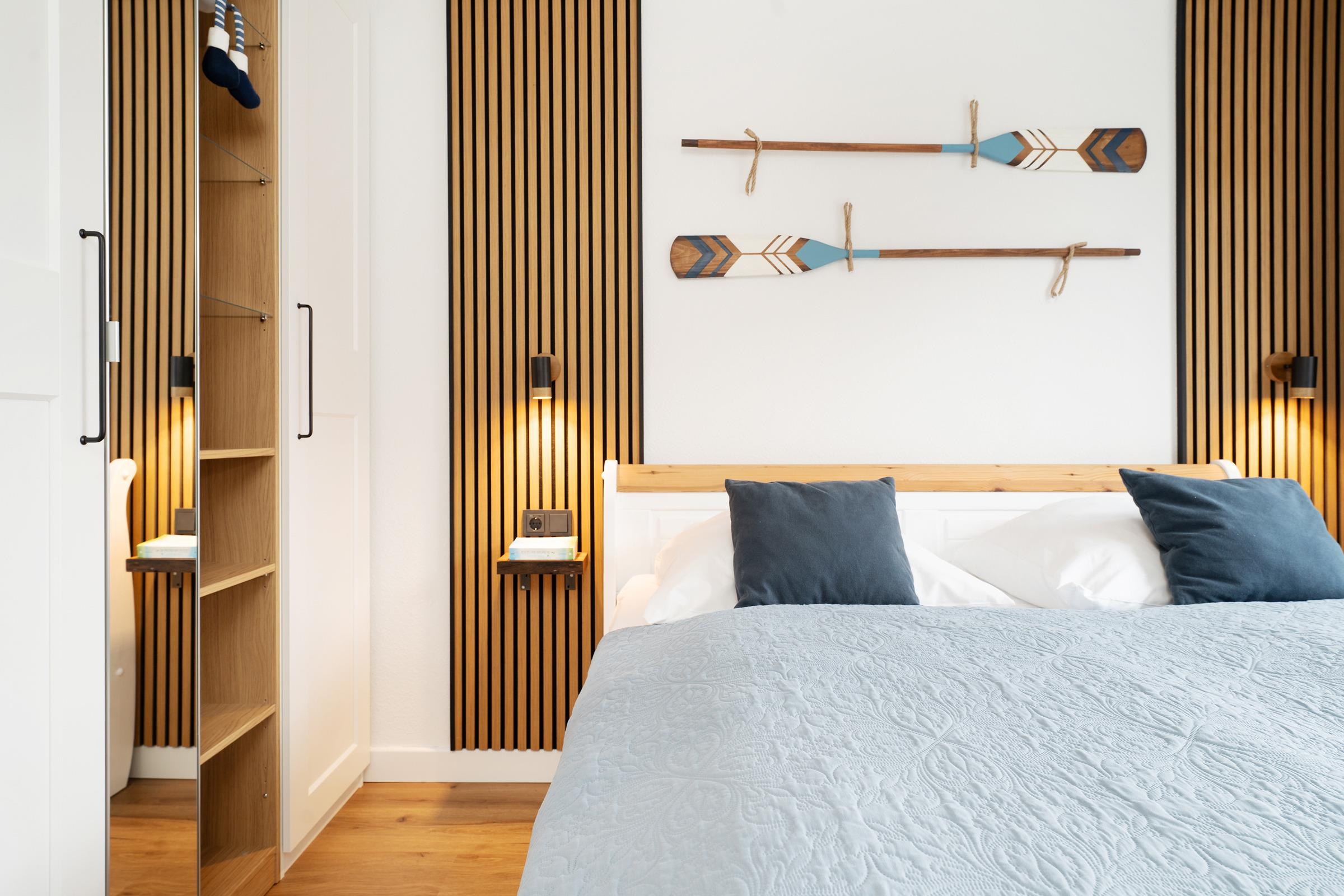 Das separate Schlafzimmer ist mit gemütlichen Doppelbett samt Topper (180x200 cm), Kleiderschrank und zweitem Flatscreen-TV ausgestattet. Das moderne Badezimmer ist elegant mit Eckdusche, WC und Waschtisch mit beleuchtetem Spiegel möbliert. Das gesamte Interieur ist modern, lässig und mit sicherem Gespür für Behaglichkeit und Stil aufeinander abgestimmt. Fußbodenheizung sorgt im Wohnzimmer, Schlafzimmer und im Bad für wohliges Raumklima, Außenjalousien ermögliche angenehme Verdunklung.