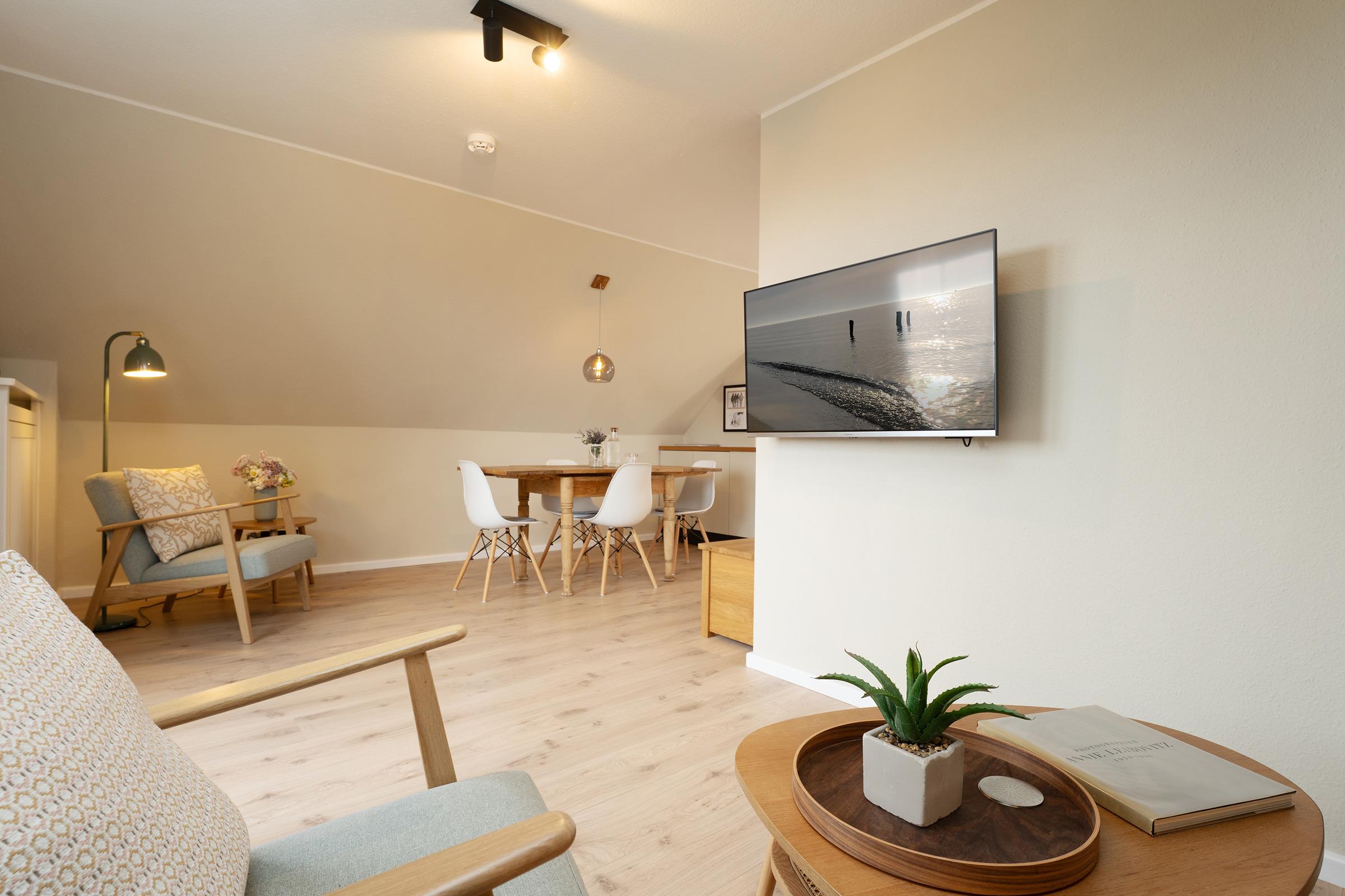 Nur 250m vom feinsandigen Ostseestrand entfernt erwartet Sie diese gemütliche Ferienwohnung im 2. Stock eines gepflegten Hauses in Dahme. Mit ihrer hellen Ausstattung und durchdachten Raumaufteilung ist sie ideal für Paare oder kleine Familien.