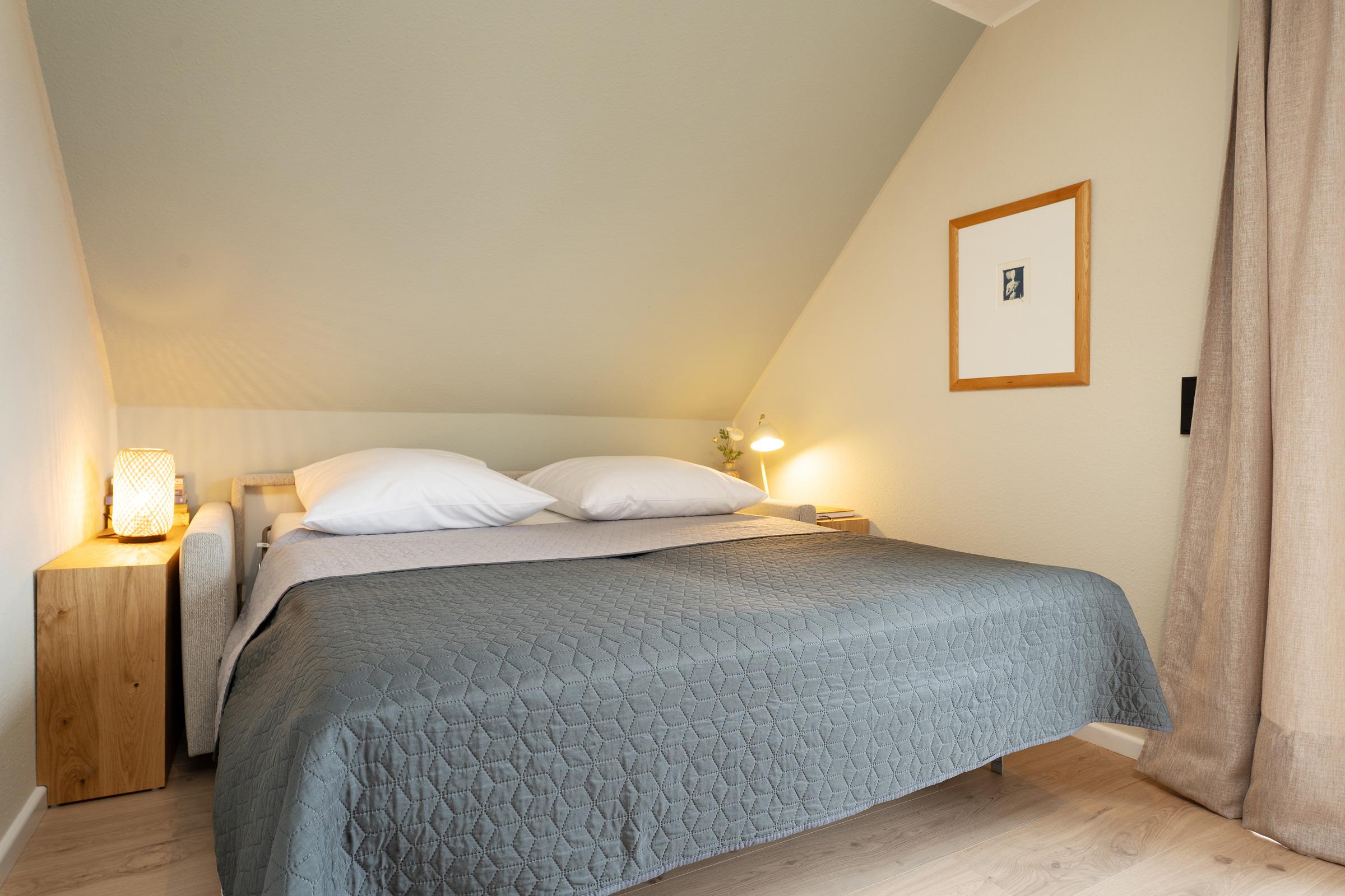 Im separaten Schlafzimmer befindet sich ein bequemes Doppelbett. Zwei weitere Schlafmöglichkeiten bietet das Wohnzimmer.