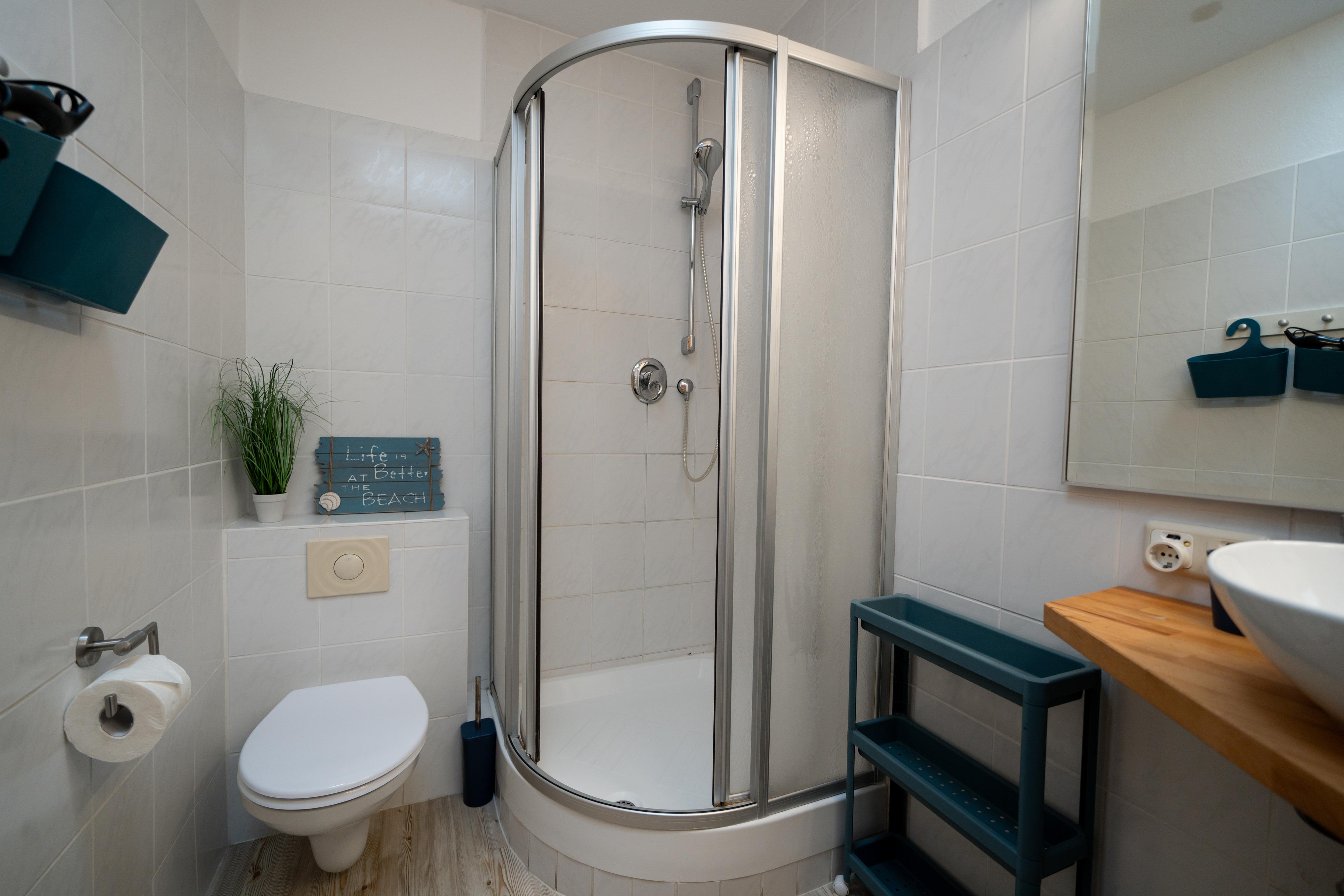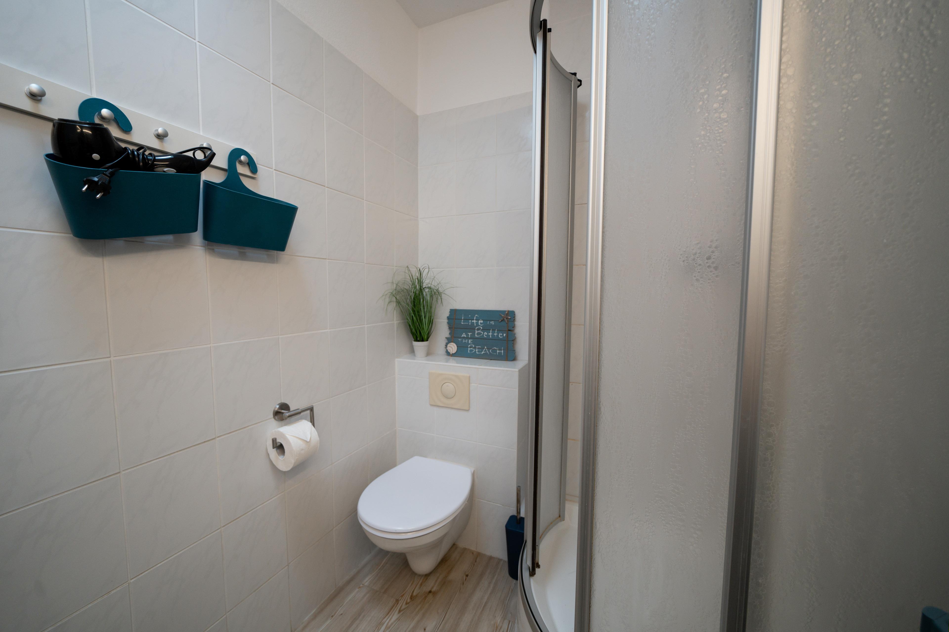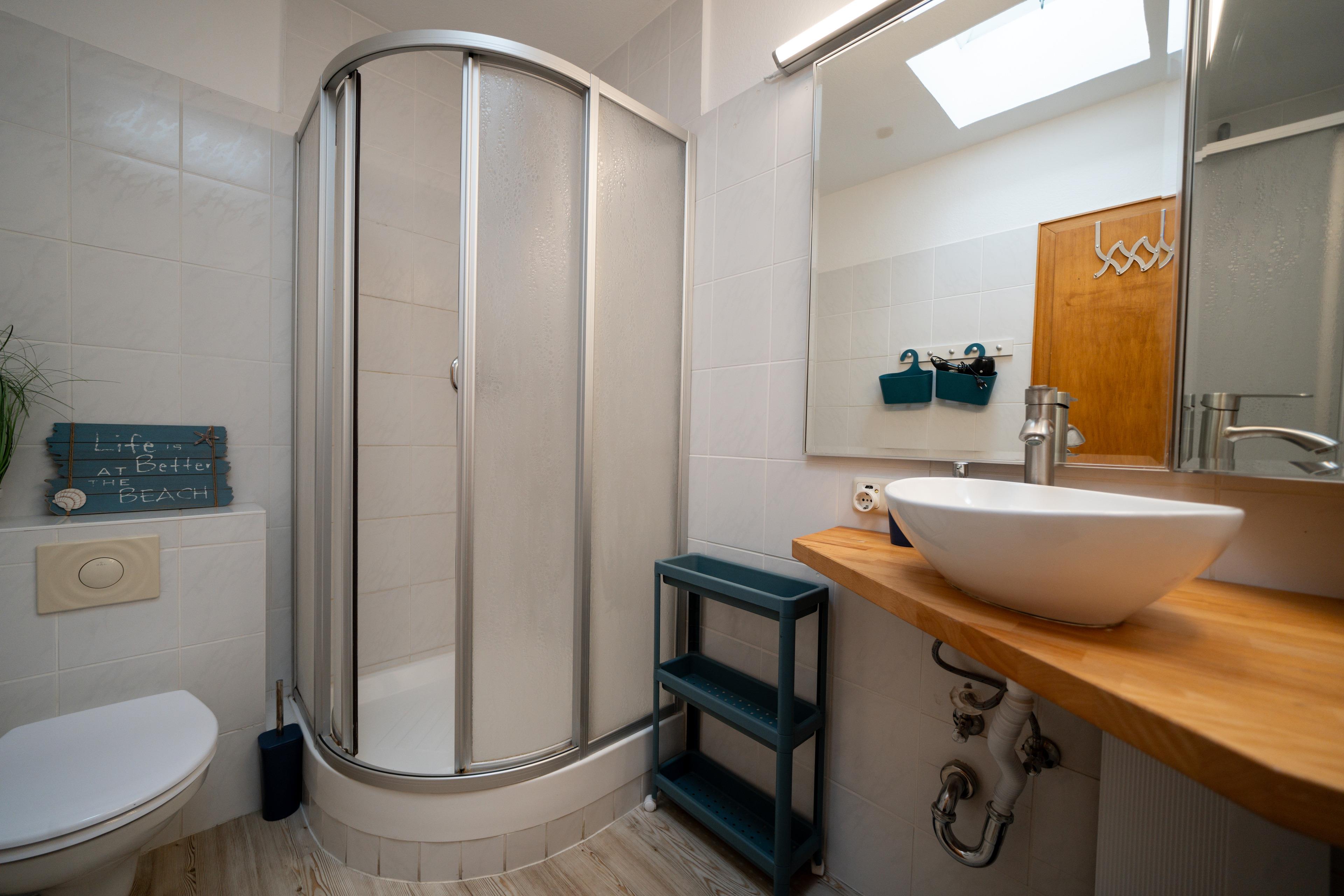 Den Mittelpunkt der Wohnung bildet der offene Wohn-/Ess- und Kochbereich. Hier trifft sich die Familie auf der großen gemütlichen Couch mit Flachbild-TV oder am Esstisch zum gemeinsamen Spielen. Loggen Sie sich über den kostenlosen WLAN-Anschluss ein, um auch im Urlaub erreichbar zu bleiben. In der gut ausgestatteten Küche können Sie Ihre Lieben mit selbst zubereiteten Köstlichkeiten versorgen. Zu der Wohnung gehört eine kleine eingezäunte Terrasse. Im Hauptschlafzimmer mit bequemem Doppelbett (2x 90x200 cm) können Sie sich nach einem ereignisreichen Urlaubstag erholen und Kraft für den neuen Tag tanken. Das 2. Schlafzimmer beinhaltet 1 Etagenbett ( 90 x 200 ) , mit Kleiderschrank. Das hell geflieste Duschbad komplettiert die Ausstattung dieser schönen Ferienwohnung.