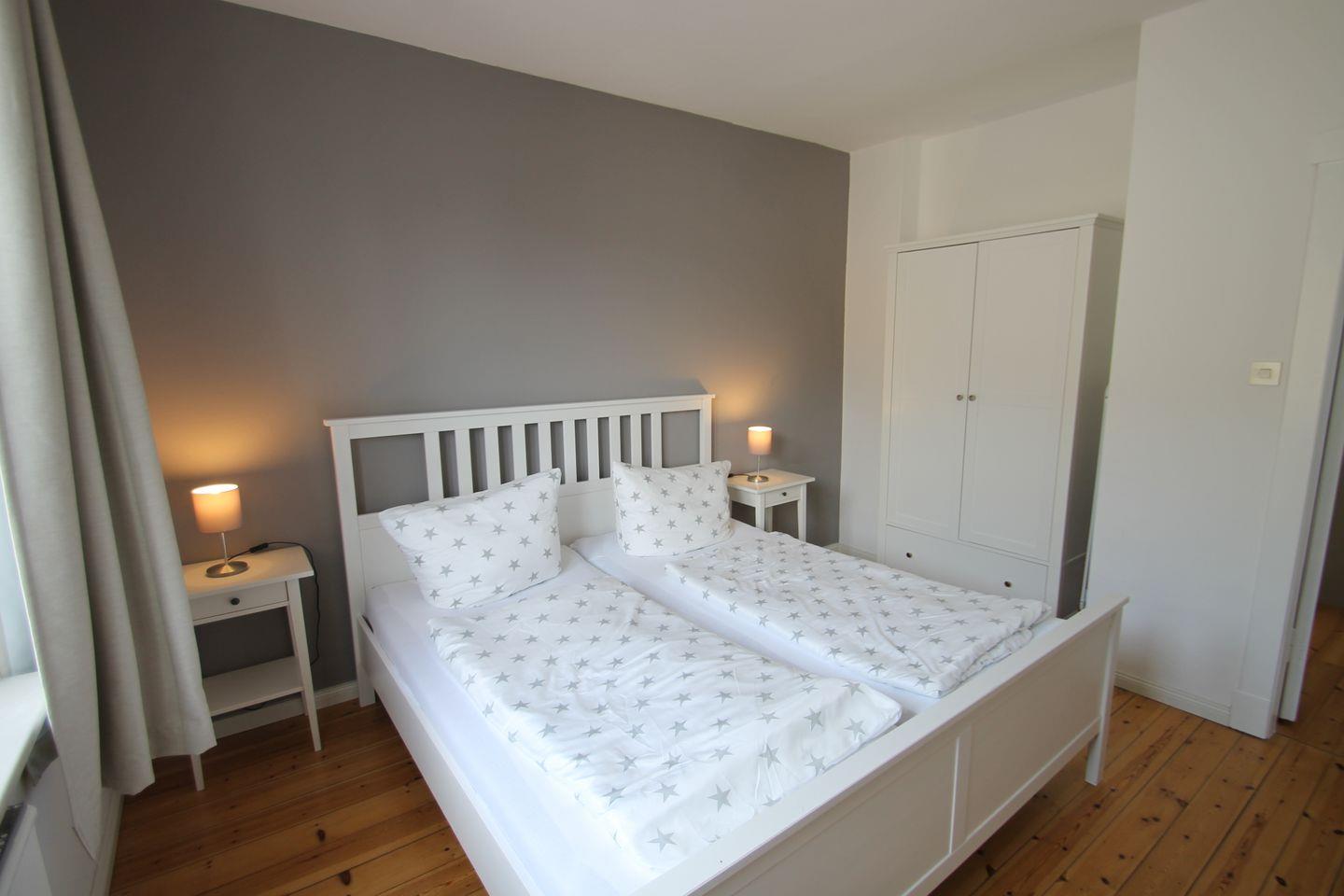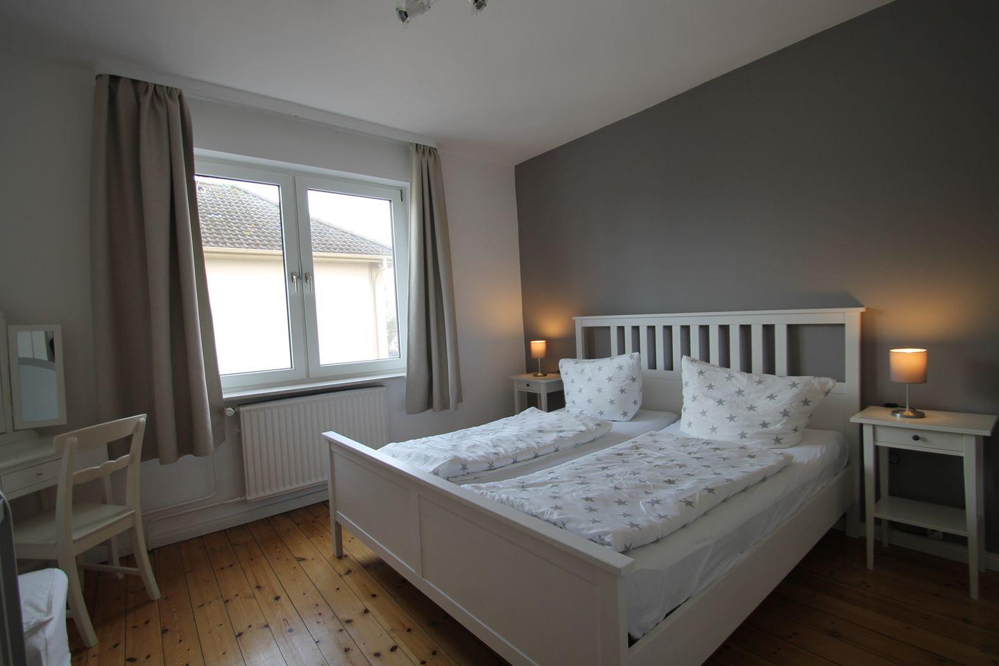 Erdgeschoss: Flur, Wohnzimmer mit TV, Sitzecke und angeschlossenem Esszimmer und geräumige, separate Küche. Das Obergeschoss ist wie folgt aufgeteilt: Flur, Schlafzimmer mit Doppelbett und Kindergitterbettchen, ein Schlafzimmer mit Etagenbett und ein 3. Schlafzimmer auch mit Doppelbett, sowie ein großes Duschbad mit Bidet und ein Gäste WC. Zur Wohnung gehört ein Stellplatz für den PKW und Sitzgelegenheiten auf der Gemeinschaftsrasenfläche hinterm Haus. W-LAN steht Ihnen kostenfrei zur Verfügung. Ihr wohlerzogener Hund bzw. zwei kleine Hunde dürfen hier gerne auch den "Hundeurlaub" verbringen. Der Strand ist zu Fuß nach ca. 150 m in Höhe der Seebrücke zu erreichen.