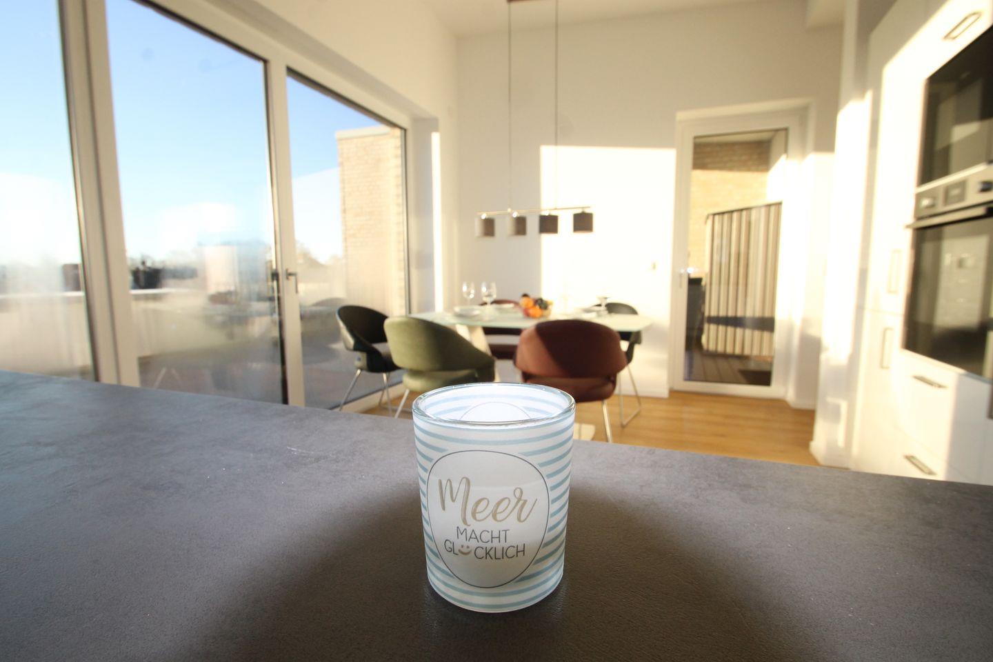 Penthousewohnung direkt hinter dem Deich. Modern eingerichtete 3 Zi-Wohnung im Dachgeschoss mit sehr großer Dachterrasse - teilüberdacht - in unmittelbarer Strandnähe. Die Wohnung verfügt über zwei Schlafzimmer, beide mit jeweils einem Doppelbett (2 x 90x200 cm). Vom Wohn-/Esszimmer aus haben Sie einen direkten Zugang zur sonnigen Dachterrasse. Im Wohnzimmer ist eine hochwertige Schlafcouch für die 5. Person vorhanden. Sehr gute Raumaufteilung und die hochwertige Ausstattung mit Smart-TV (ein TV im Schlafzimmer, einer im Wohnzimmer), Blue-Ray-Player, bodentiefer Dusche und Haartrockner im Badezimmer und ein Waschtrockner ergänzen die gehobene und moderne Ausstattung dieser Wohnung. Ein zweites Duschbad ist vorhanden. Die komplett ausgestattete Küche ist offen in den Wohnraum integriert. Die Fußbodenheizung sorgt für wohlige Wärme. Der PKW-Stellplatz (überdachter Carport) für diese bezaubernde Wohnung ist direkt vor dem Haus, dass insgesamt aus acht Ferienwohnungen besteht. Ein Fahrstuhl bringt Sie gerne ins 2. Obergeschoss. Am Carport findet der Gast auch die abschließbare Unterstellmöglichkeit für mitgebrachte Fahrräder und E-Bikes. In dieser Wohnung können Sie Ihren Ostseetraum verwirklichen und schöne Urlaubstage verbringen! Einziehen, wohlfühlen… und ab ins Meer! Lifestyle Ferienwohnung für den besonderen Urlaub in Dahme.