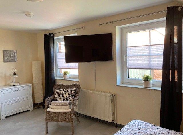 Die Unterkunft erstreckt sich über 66 m² und befindet sich im ersten Stock eines gepflegten Hauses. Mit zwei behaglichen Schlafzimmern, eines davon mit Fernseher und Doppelbett sowie das andere mit Doppelbett und einem Einzelbett, einem Badezimmer und einem offenen Wohn- und Essbereich können Sie hier entspannen und die gemeinsame Zeit genießen. Die Ausstattung umfasst alles, was Sie für einen gelungenen Aufenthalt benötigen. In der vollausgestatteten Küche finden Sie einen Herd, Kühlschrank, Geschirrspüler, Toaster, Wasserkocher und eine Kaffeemaschine, darunter eine Nespresso-Maschine für besonders feinen Kaffeegenuss. Ihr Handy können Sie in der Ladestation aufladen.