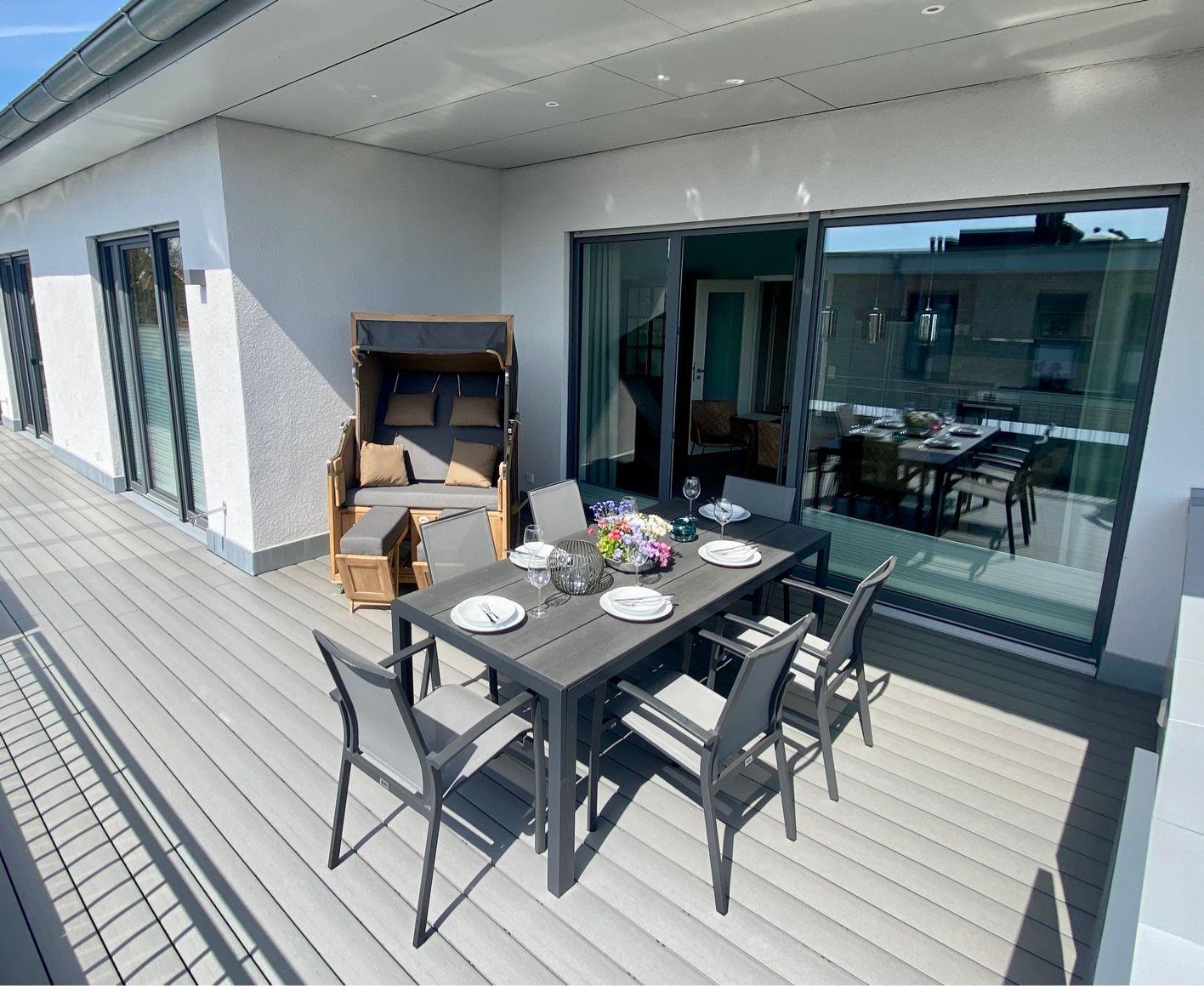 Traumhaftes Penthouse mit großer Dachterrasse und Ostseeblick, nur 130 Meter vom Strand entfernt.