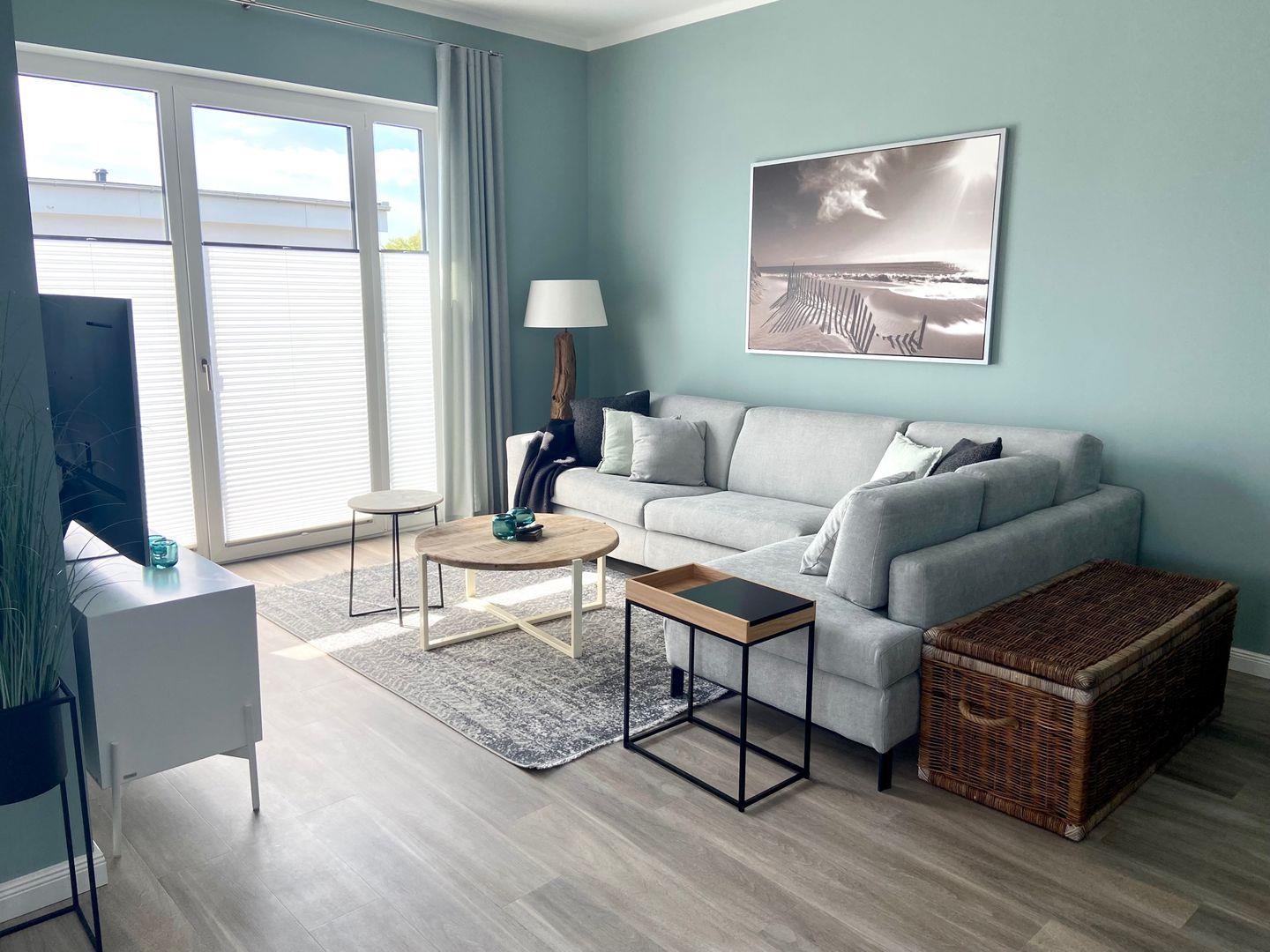 Traumwohnung an der Ostsee: Diese Penthousewohnung befindet sich in der beliebten Strandwiese. Ein Fahrstuhl bringt Sie nach oben und lässt den Urlaub sofort beginnen. Hier empfängt Sie eine modern eingerichtete 3 Zimmer-Wohnung mit großer Dachterrasse - teilüberdacht mit Strandkorb und bequemen Gartenmöbeln - in unmittelbarer Strandnähe. Die Wohnung verfügt über zwei Schlafzimmer, beide mit TV und jeweils einem Boxspring-Doppelbett 1,80 x 2,00 m (mit durchgängigen Matratzen) ausgestattet. Vom Wohnzimmer mit TV und vom Esszimmer aus haben Sie einen direkten Zugang zur sonnigen Südterrasse. Ein Schreibtisch lässt Sie auch beim Homeoffice mit kostenlosen WLAN entspannt arbeiten. Die sehr gute Raumaufteilung und die hochwertige Ausstattung sorgen für höchsten Urlaubskomfort. Die bodentiefer Dusche im großzügigen Badezimmer mit Waschmaschine ergänzen die gehobene und moderne Ausstattung dieser Wohnung. Die komplett ausgestattete Küche ist offen in den Wohnraum integriert. Die Fußbodenheizung sorgt für wohlige Wärme. Der PKW-Stellplatz für diese bezaubernde Wohnung befindet sich direkt vor dem Haus, das insgesamt aus acht Ferienwohnungen besteht. Auf dem Grundstück finden auch eine Unterstellmöglichkeit für mitgebrachte Fahrräder und E-Bikes. In dieser Wohnung können Sie Ihren Ostseetraum verwirklichen und schöne Urlaubstage verbringen ! Einziehen, wohlfühlen … und ab ins Meer ! Lifestyle Ferienwohnung für den besonderen Urlaub in Dahme. Auf den Bildern erkennen Sie, dass der Ausblick zur Ostsee von der Terrasse sowie vom Esszimmer grandios ist.