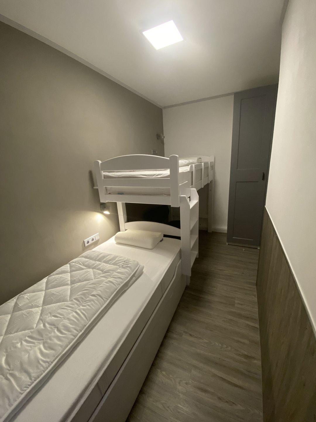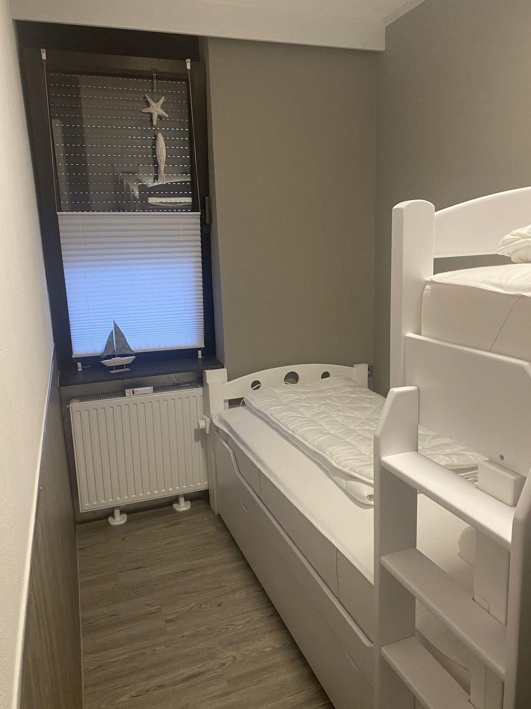 - Schlafzimmer mit 2 Einzelbetten (90 x 200 cm) , ein Bett wie Hochbett