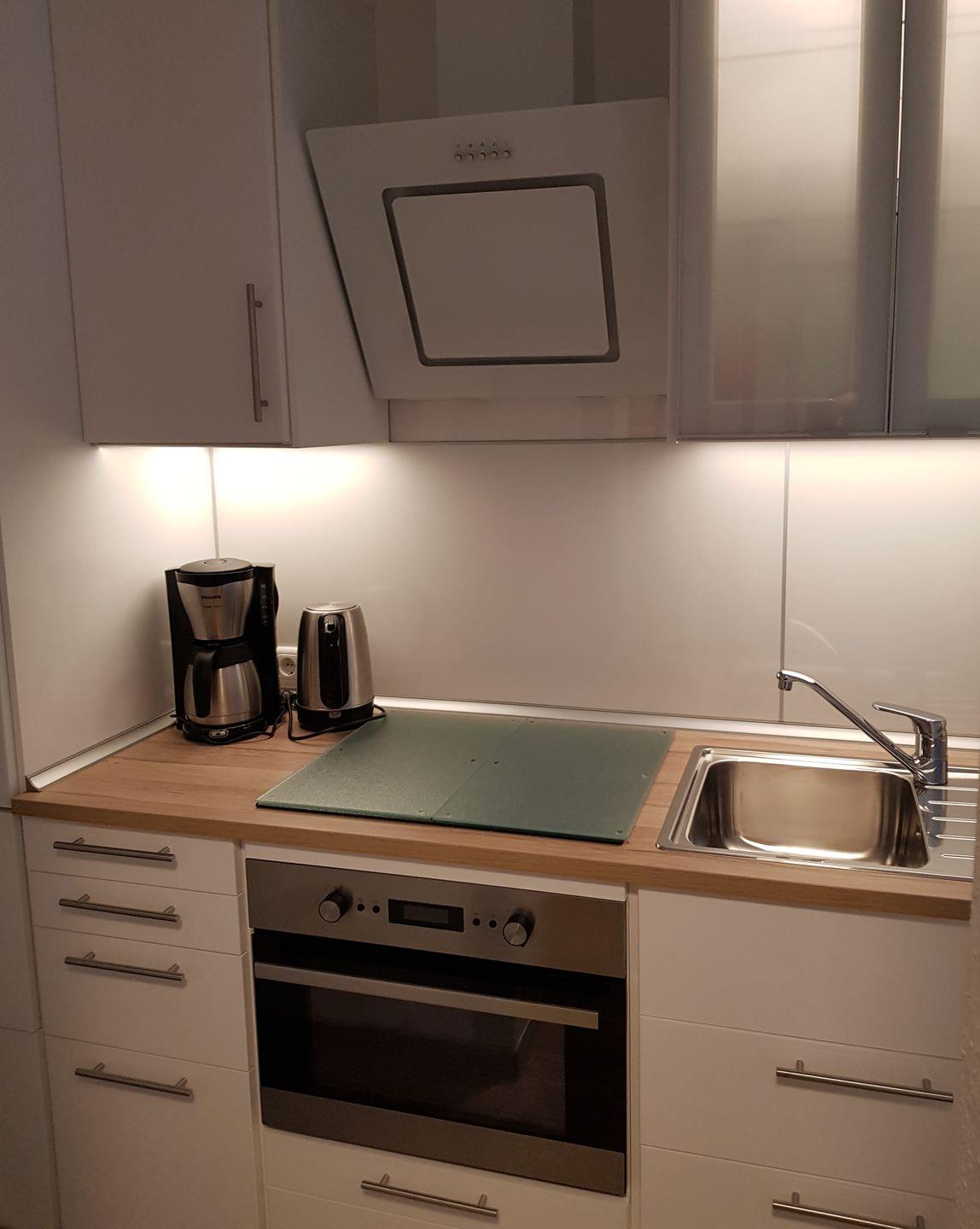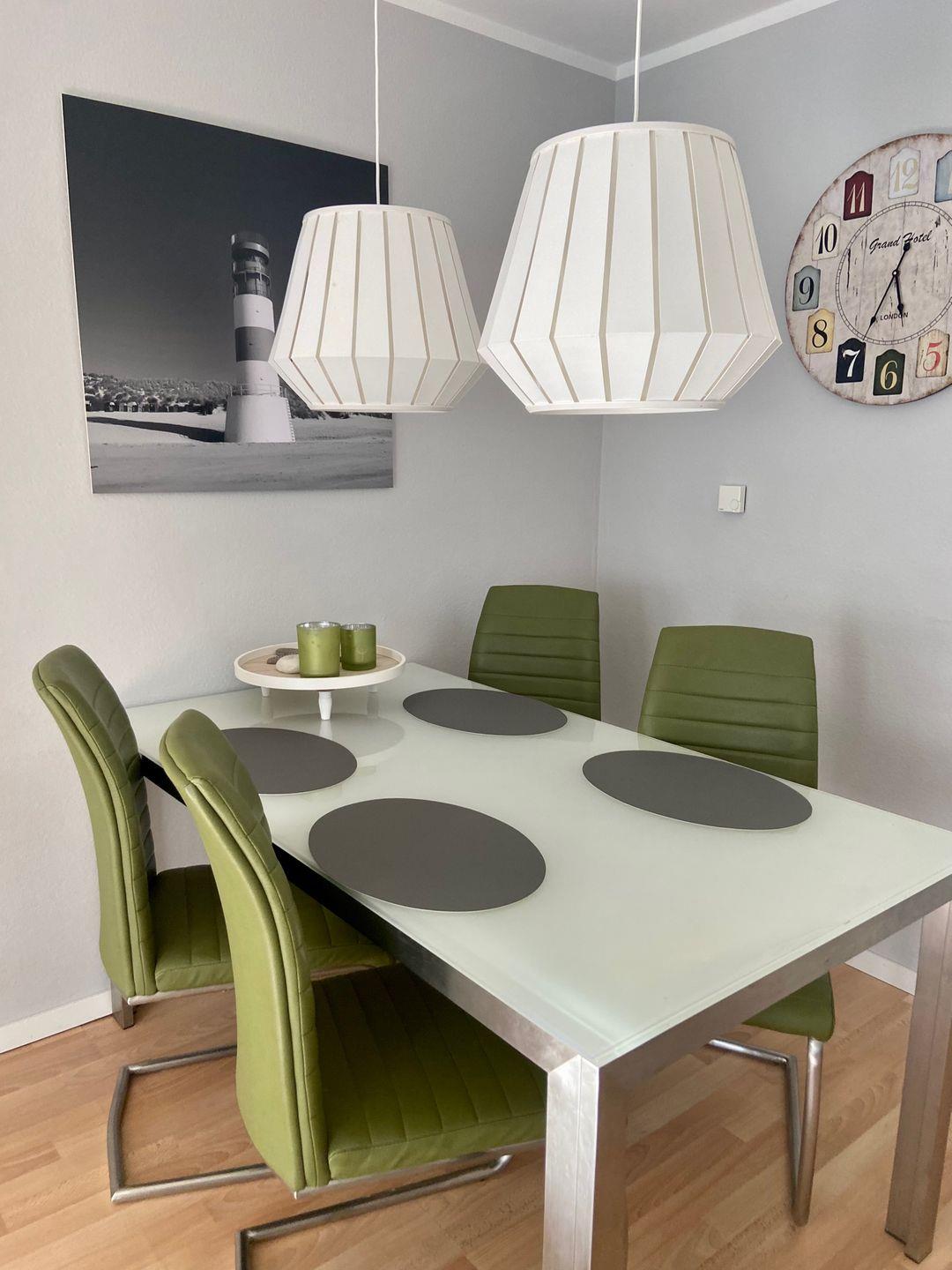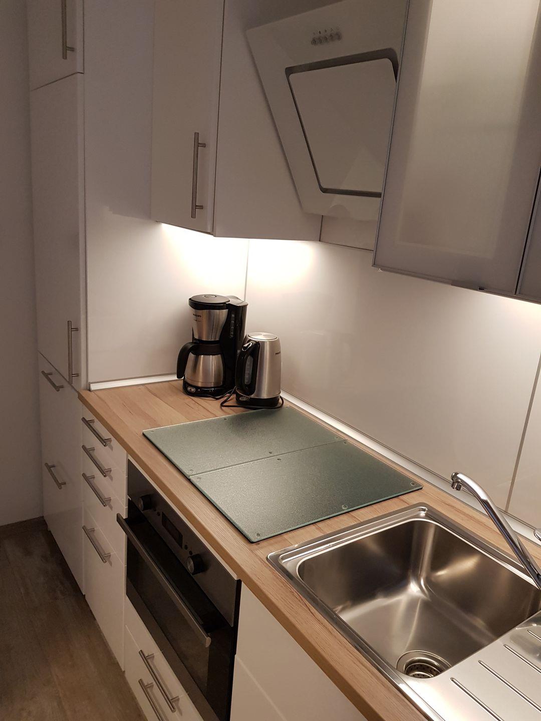 Im Wohnbereich unten finden Sie ein gemütliches Wohn- / Esszimmer mit einer hochwertigen Schlafcouch und TV. Von hier aus kommen Sie auf die möblierte, sichtgeschützte Terrasse, wo Sie in Dahme sicherlich einige sonnige Stunden verbringen können. Der Essbereich ist ebenfalls im Wohnzimmer integriert. Das WLAN ist natürlich inklusive. Die moderne Küche in Hochglanzweiß ist komplett mit Mikrowelle, Spülmaschine, Kühlschrank, Ceranfeld mit Backofen, Kaffeemaschine, Wasserkocher und Toaster ausgestattet. Auch ein Gäste-WC steht Ihnen im Erdgeschoß zur Verfügung.