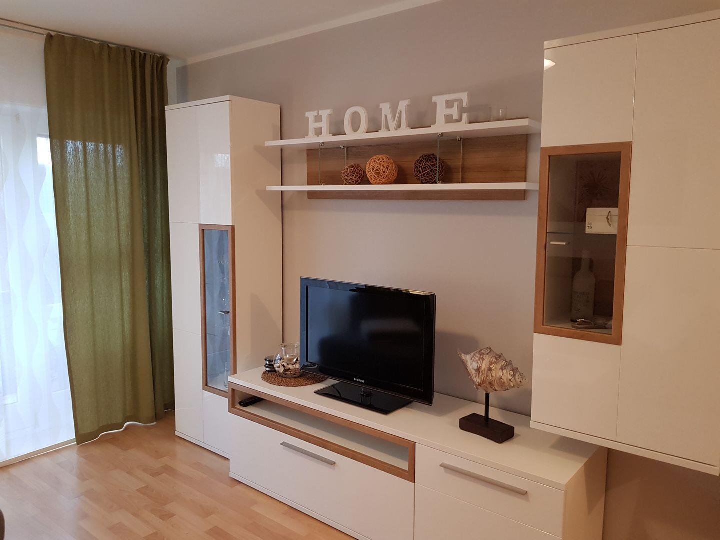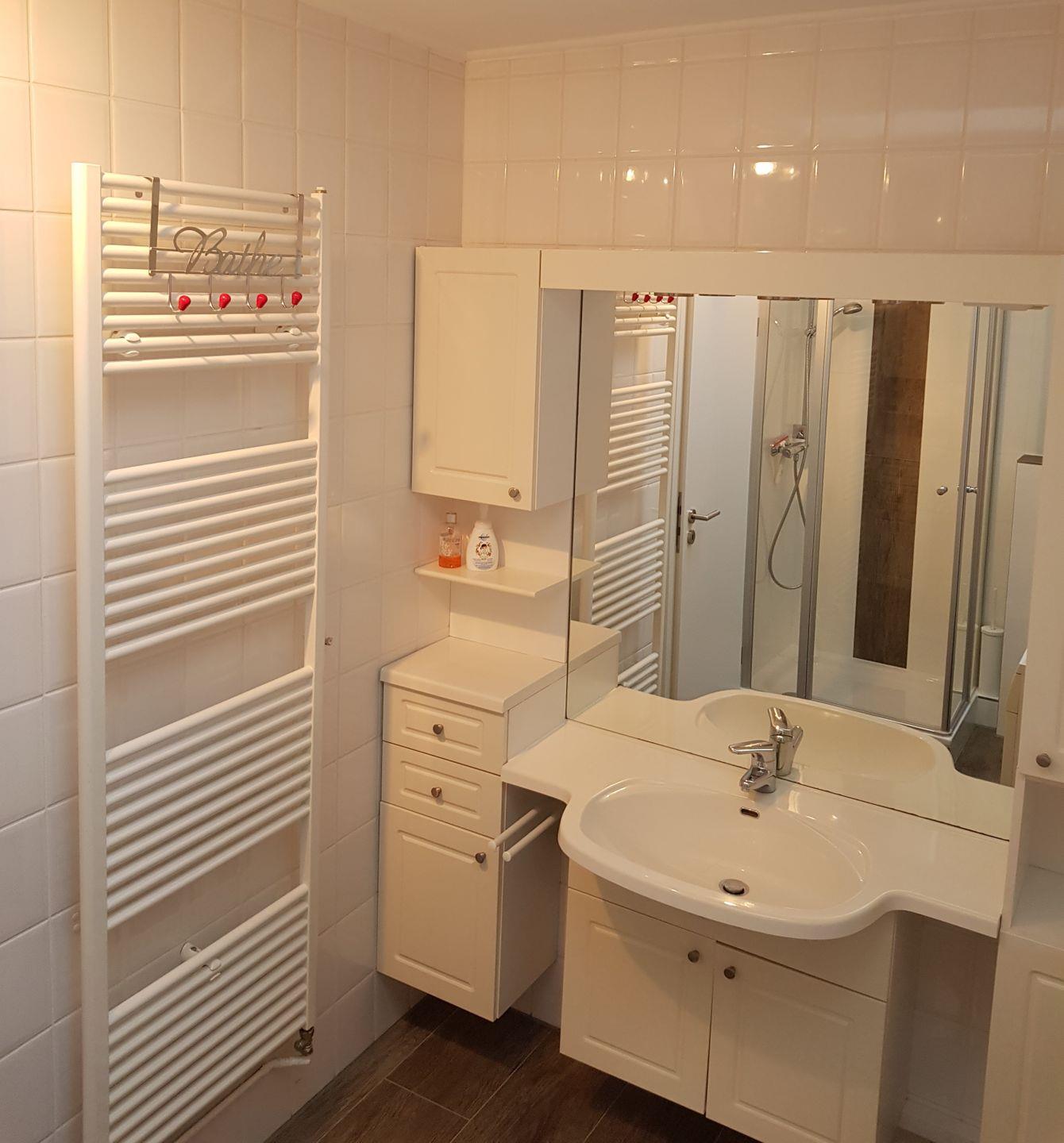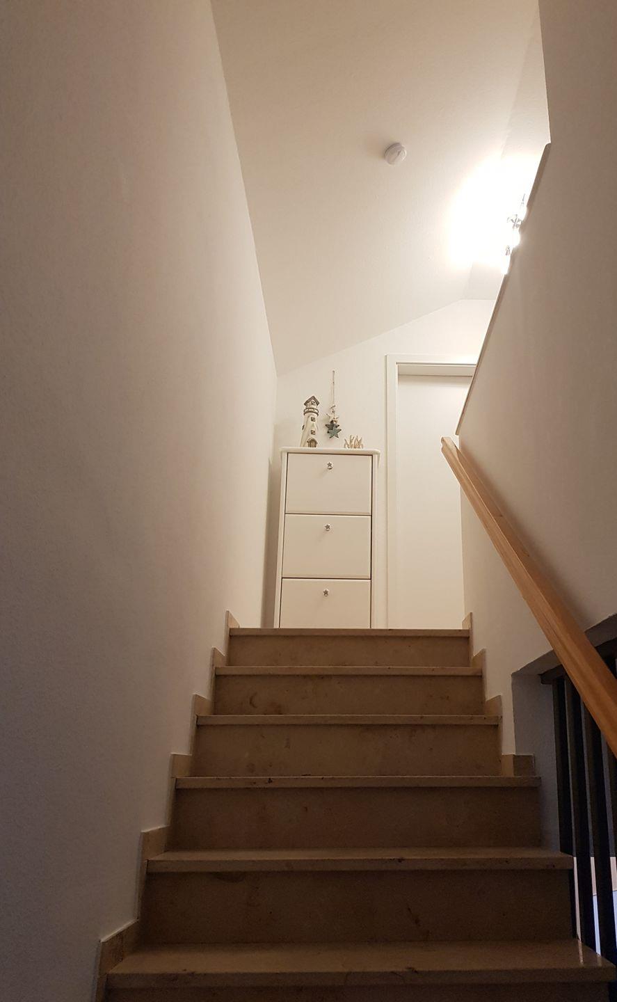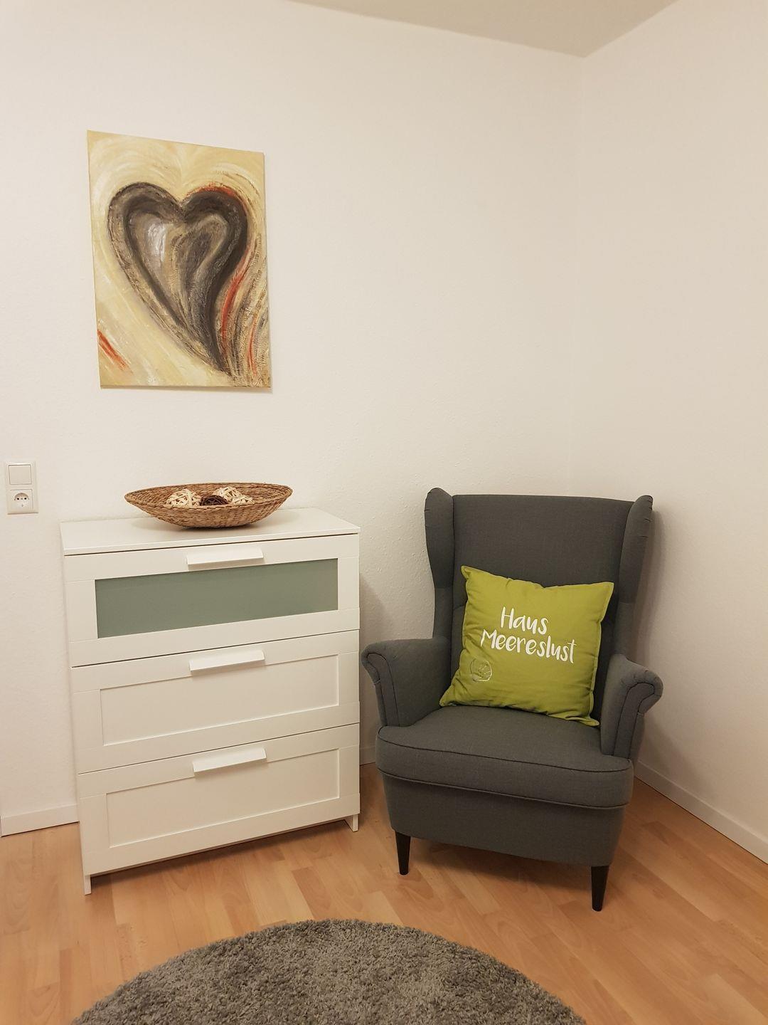 Im Wohnbereich unten finden Sie ein gemütliches Wohn- / Esszimmer mit einer hochwertigen Schlafcouch und TV. Von hier aus kommen Sie auf die möblierte, sichtgeschützte Terrasse, wo Sie in Dahme sicherlich einige sonnige Stunden verbringen können. Der Essbereich ist ebenfalls im Wohnzimmer integriert. Das WLAN ist natürlich inklusive. Die moderne Küche in Hochglanzweiß ist komplett mit Mikrowelle, Spülmaschine, Kühlschrank, Ceranfeld mit Backofen, Kaffeemaschine, Wasserkocher und Toaster ausgestattet. Auch ein Gäste-WC steht Ihnen im Erdgeschoß zur Verfügung.