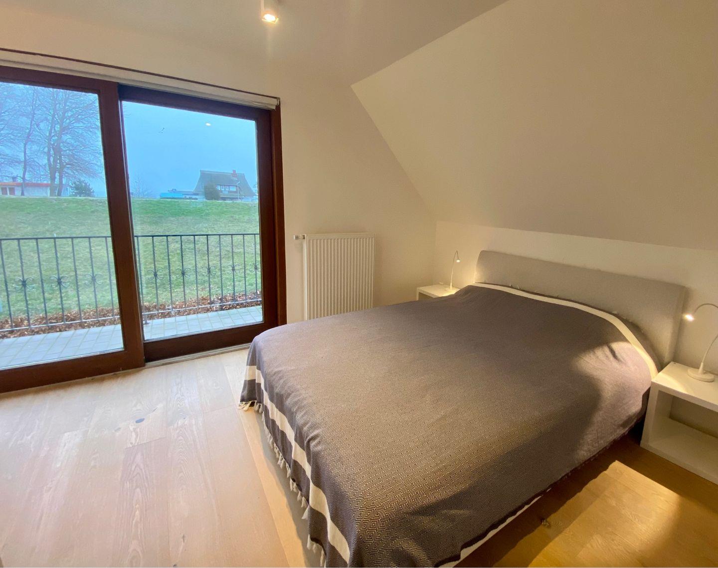 Hier haben Sie einen tollen Meerblick vom Schlafzimmer im ersten OG und gehen nur ca. 100 Meter bis zum Strand und zur Seebrücke.