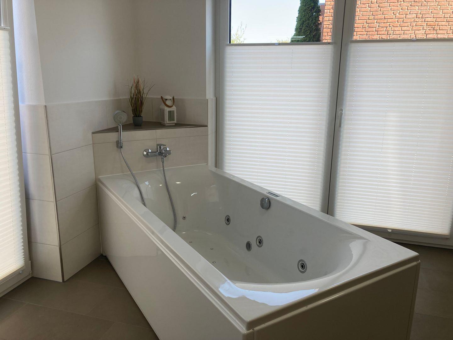 - luxuriöses Wellnessbad mit Whirlwanne, Walk In Dusche und Sauna