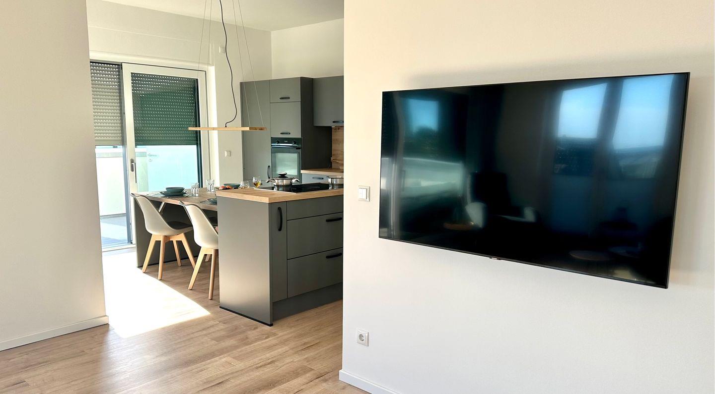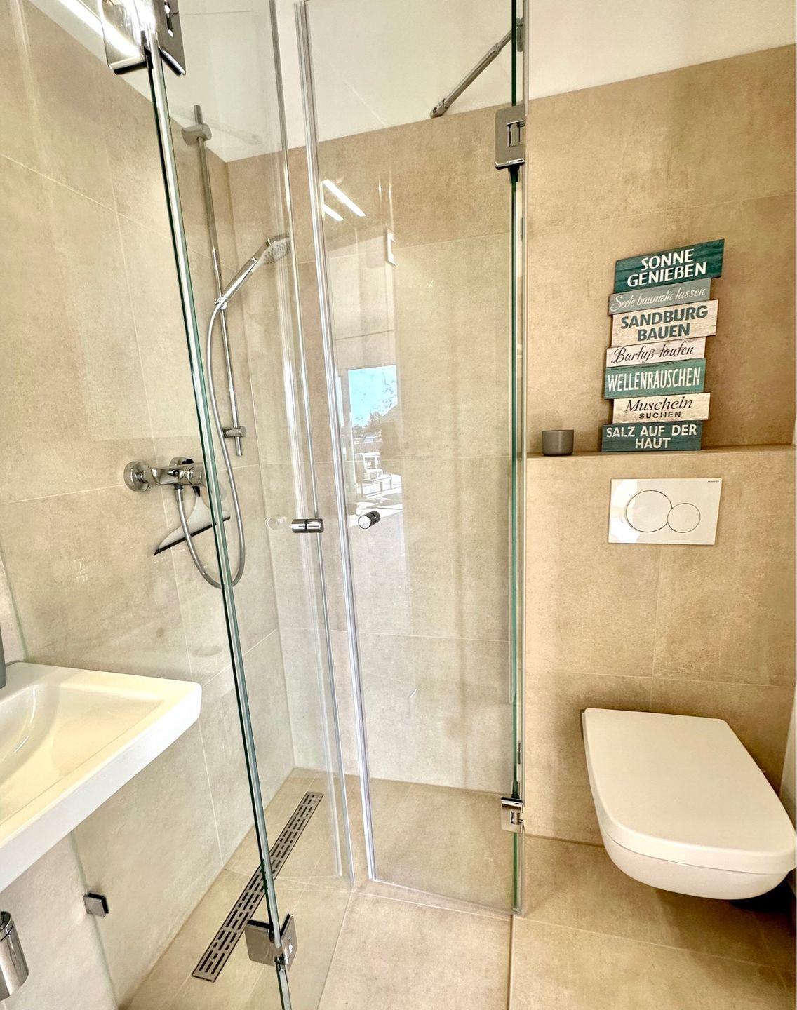 Traumwohnung an der Ostsee: Diese Penthousewohnung befindet sich in der beliebten Strandwiese. Ein Fahrstuhl bringt Sie nach oben und lässt den Urlaub sofort beginnen. Hier empfängt Sie eine modern eingerichtete 3 Zimmer-Wohnung mit großer Dachterrasse - teilüberdacht mit bequemen Gartenmöbeln - in unmittelbarer Strandnähe. Die Wohnung verfügt über zwei Schlafzimmer und ist jeweils mit einem Doppelbett 1,80 x 2,00 m und Kleiderschrank ausgestattet. Vom Wohnzimmer mit TV und von der Küche aus haben Sie einen direkten Zugang zur sonnigen Dachterrasse mit Meerblick. Die sehr gute Raumaufteilung und die hochwertige Ausstattung sorgen für höchsten Urlaubskomfort. Die bodentiefe Dusche im großzügigen Badezimmer, eine gemütliche Badewanne und ein Bidet ergänzen die gehobene und moderne Ausstattung dieser Wohnung. Trotzdem haben Sie noch ein zusätzliches Badezimmer mit Dusche und WC Die komplett ausgestattete Küche mit integrierter Essecke ist in den Wohnraum integriert. Die Fußbodenheizung sorgt für wohlige Wärme. Der PKW-Stellplatz für diese tolle Wohnung befindet sich direkt vor dem Haus, das insgesamt aus acht Ferienwohnungen besteht. Auf dem Grundstück befindet sich auch eine Unterstellmöglichkeit für mitgebrachte Fahrräder und E-Bikes. In dieser Wohnung können Sie Ihren Ostseetraum verwirklichen und schöne Urlaubstage verbringen ! Einziehen, wohlfühlen … und ab ins Meer ! Lifestyle Ferienwohnung für den besonderen Urlaub in Dahme. Auf den Bildern erkennen Sie, dass der Ausblick zur Ostsee von der Terrasse grandios ist - Jetzt fehlen nur noch Sie!