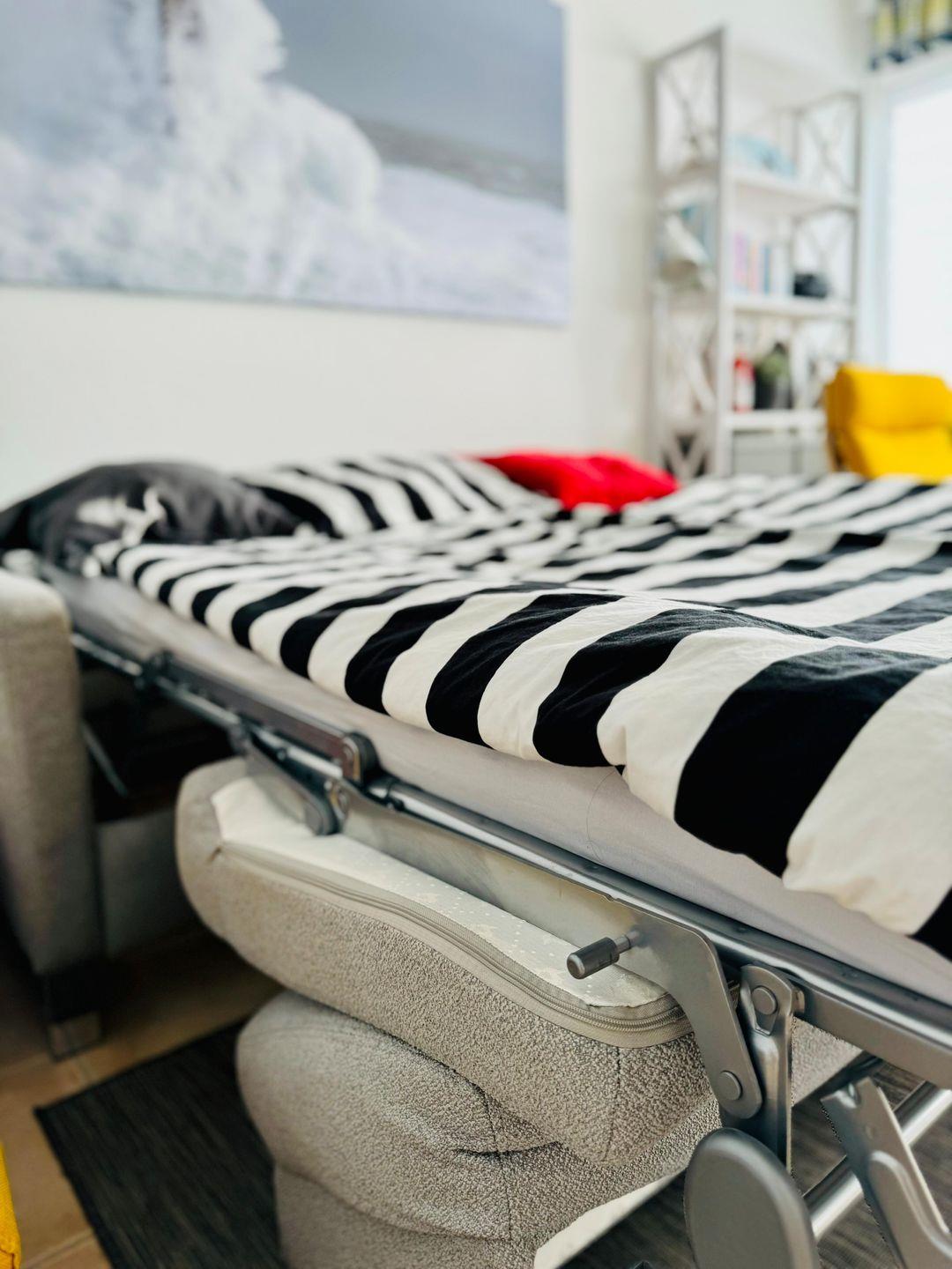 Schicke, kleine 2-Zimmer Wohnung in Südlage in unmittelbarer Standnähe. Dieses Kleinod ist unweit der Steilküste und zu dem Wanderweg zum Leuchtturm gelegen. Sonnige Terrasse mit PKW-Stellplatz direkt am Objekt. Zeitgemäßes Wohnzimmer mit Panoramafenster, offene kleine funktionale Küche, neues Tageslicht-Duschbad mit extra großer Dusche sowie gute Einrichtung im Schlafzimmer mit zwei Einzelbetten (90x200 cm)runden das Angebot ab. Im Wohnzimmer erwartet Sie zusätzlich noch eine neue, hochwertige Schlafcouch mit Gelschaumtopper (140x200 cm), damit diese Wohnung auch mit bis zu vier Personen genutzt werden kann. Die Hütte kann als Stauraum für z.B. Räder oder Strandsachen genutzt werden kann. Hier entspannen Sie in absolut ruhiger Wohnlage. Zum Strand sind es nur wenige Schritte zu Fuß. Klein, knuffig und gemütlich! Und ab sofort darf auch ein lieber Hund mitgebracht werden.