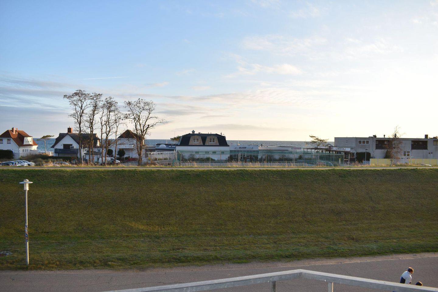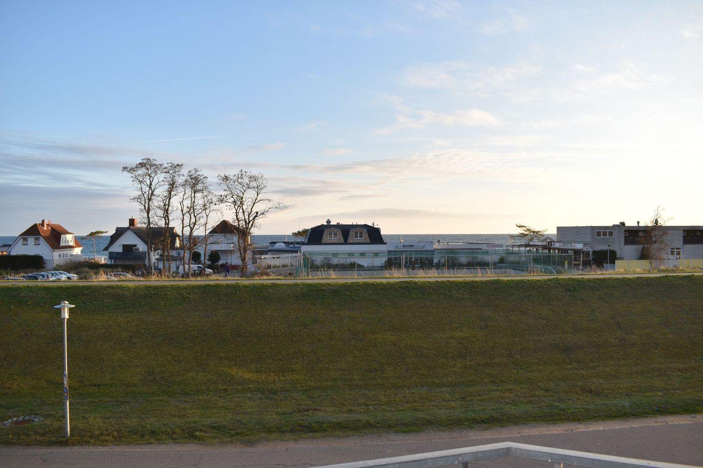 Strandnahes Zwei-Zimmer-Apartment in Dahme mit Balkon und Blick über den Deich, nur 50 m vom Strand entfernt.