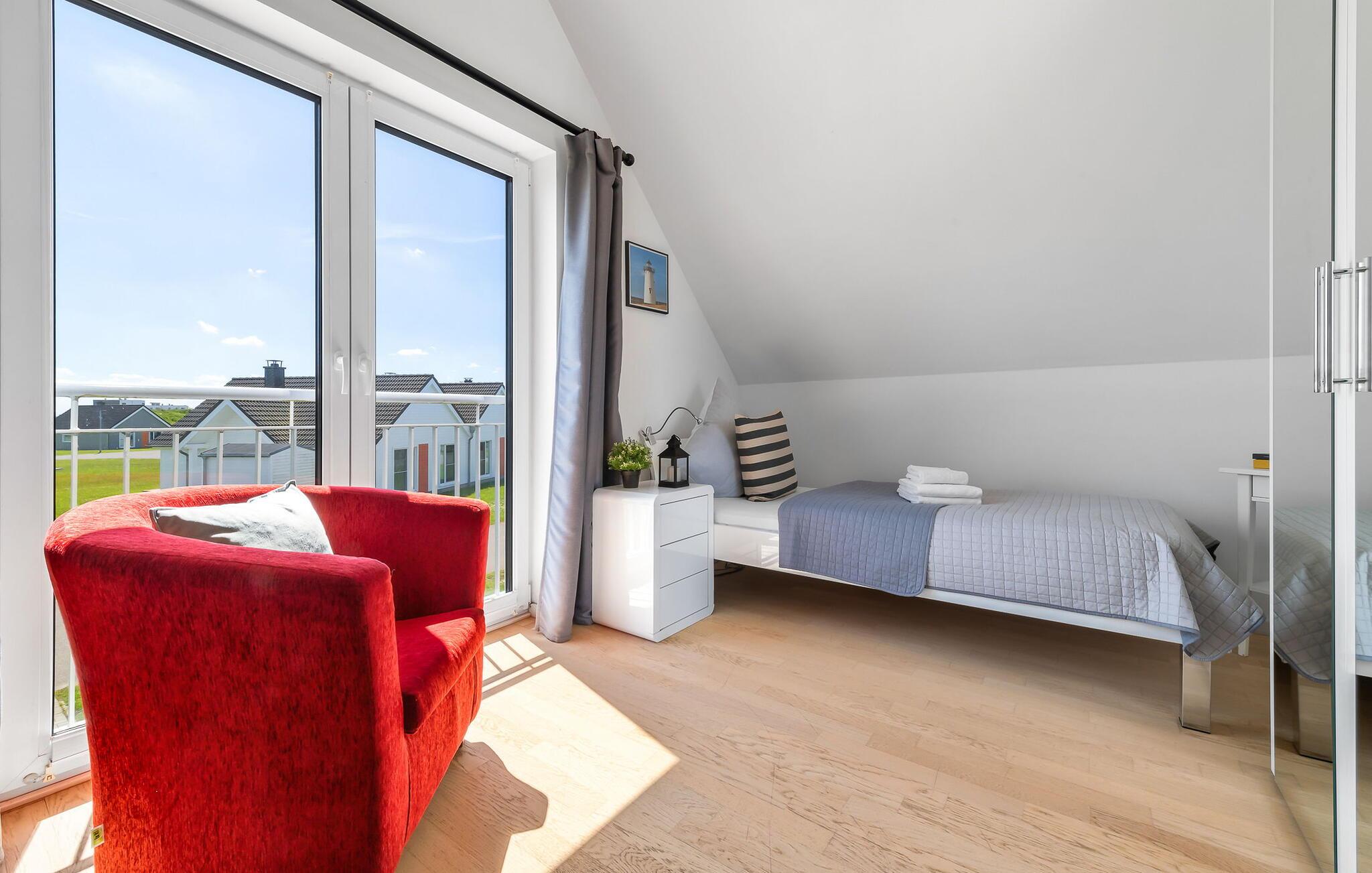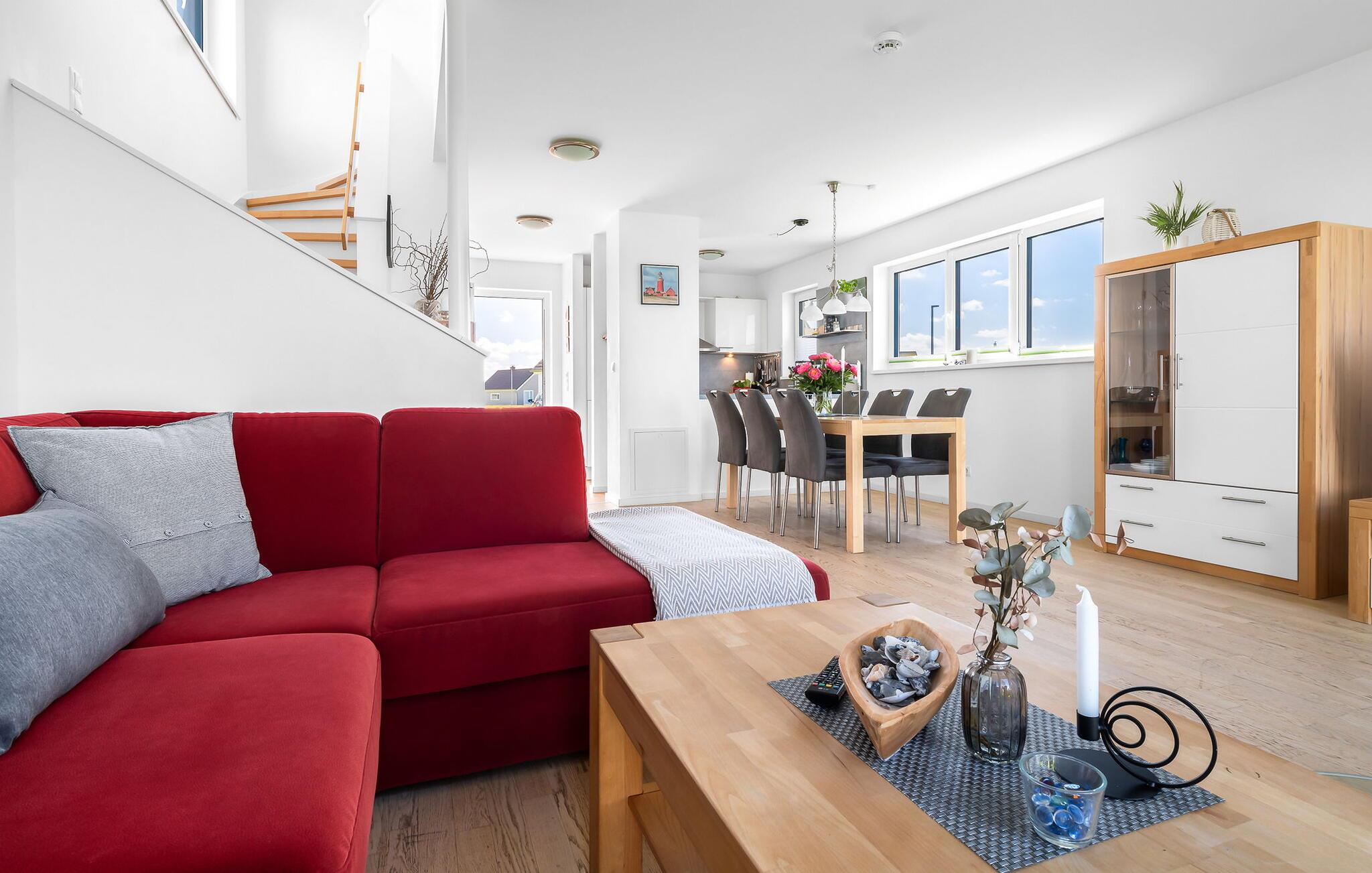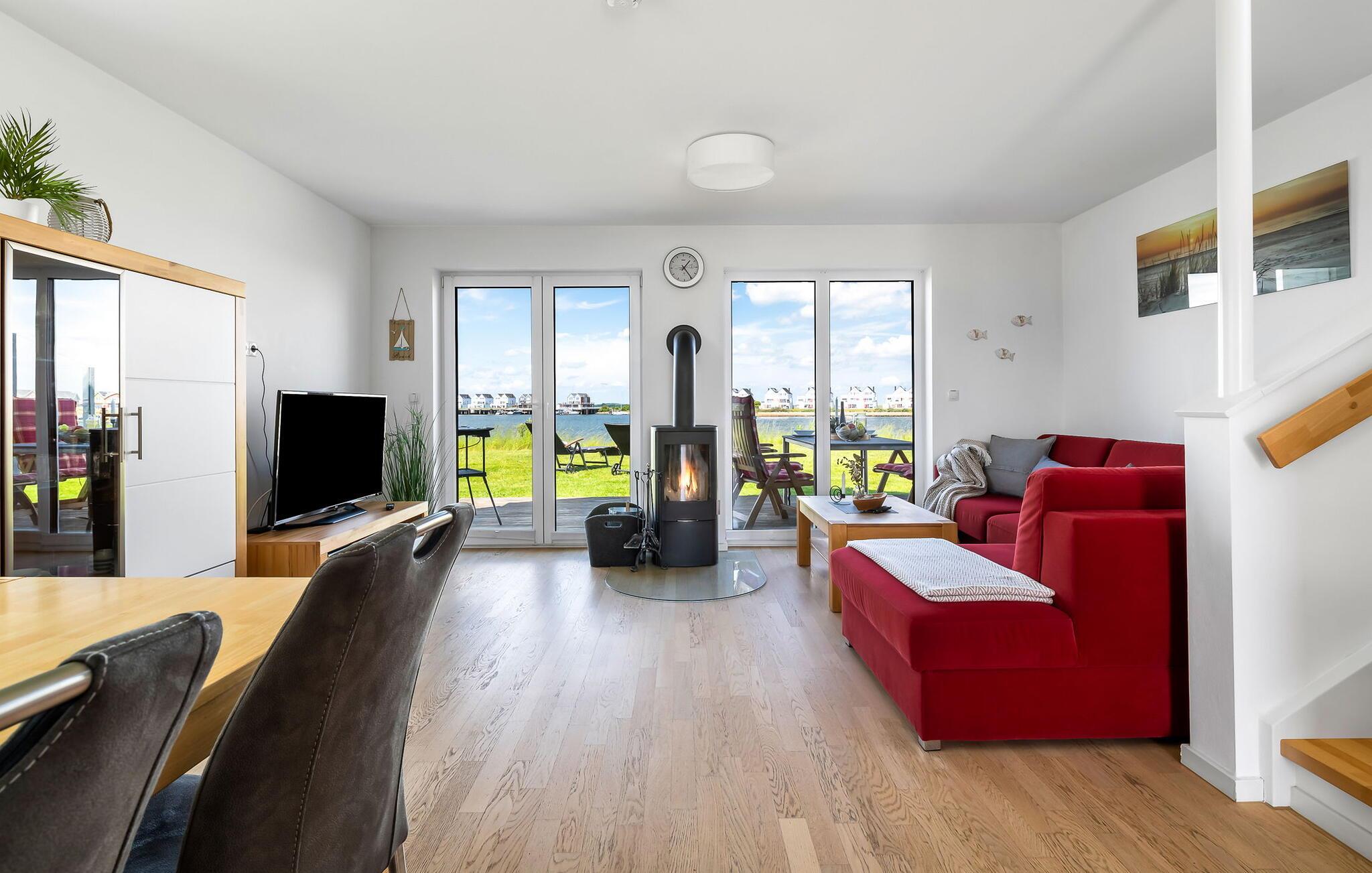 Das zweistöckige Haus bietet mehr als genug Platz für eure Familie. Neben zwei komfortablen Schlafzimmern lässt sich auch die Couch ganz schnell von einer bequemen Sitzangelegenheit in einen zusätzlichen Schlafplatz für zwei weitere Gäste verwandeln. Der lichtdurchflutete Wohnbereich eignet sich hervorragend für gemütliche Filmabende mit dem Smart TV oder auch den Genuss eines erlesenen Glas Wein vor dem Feuer des Kaminofens.
