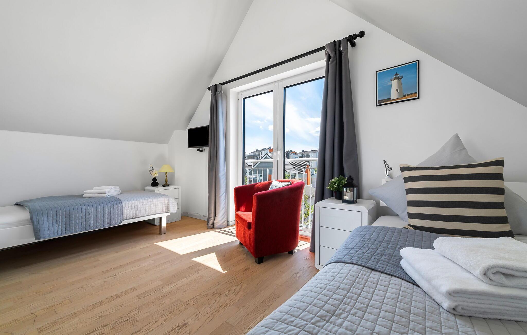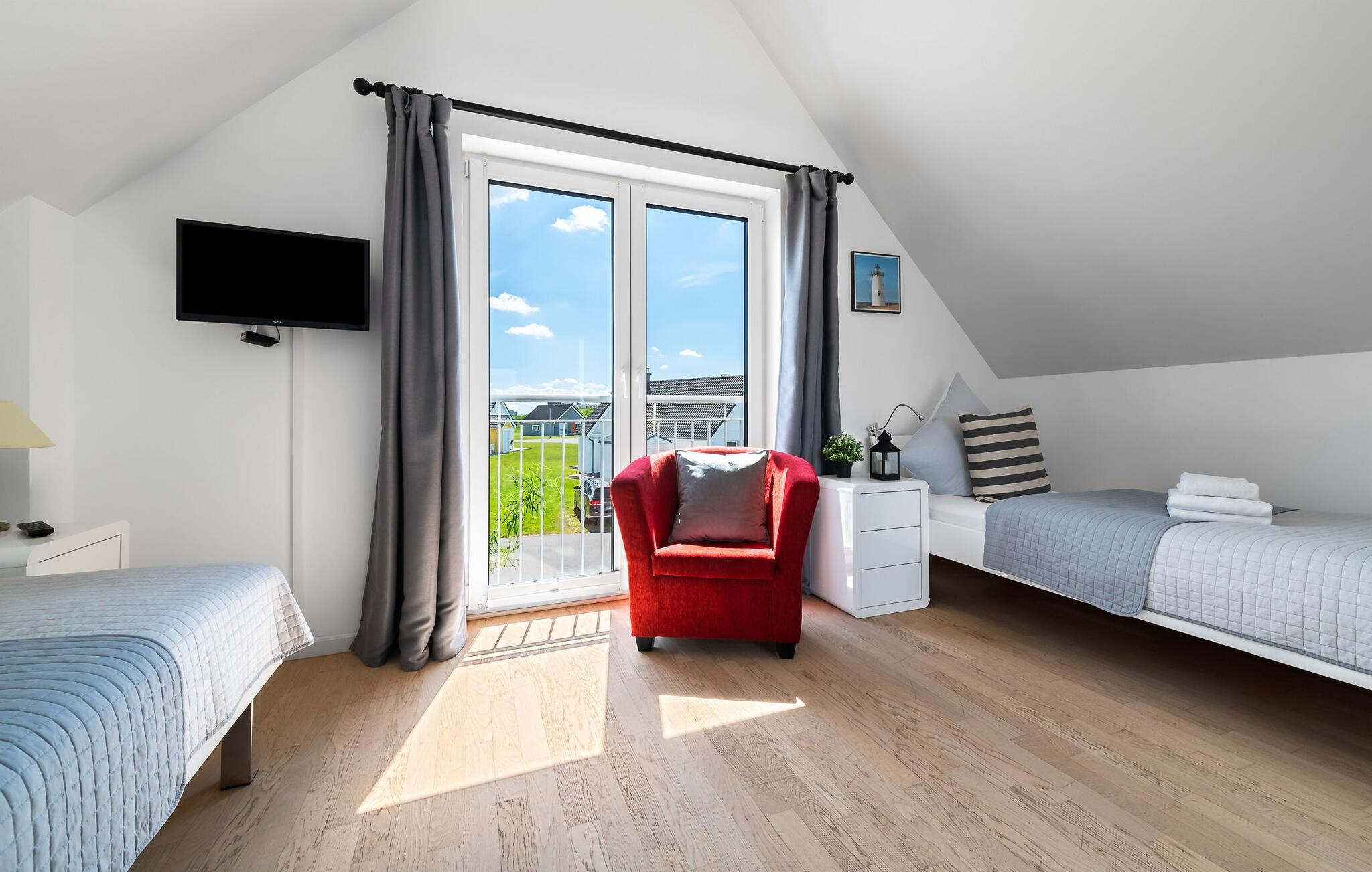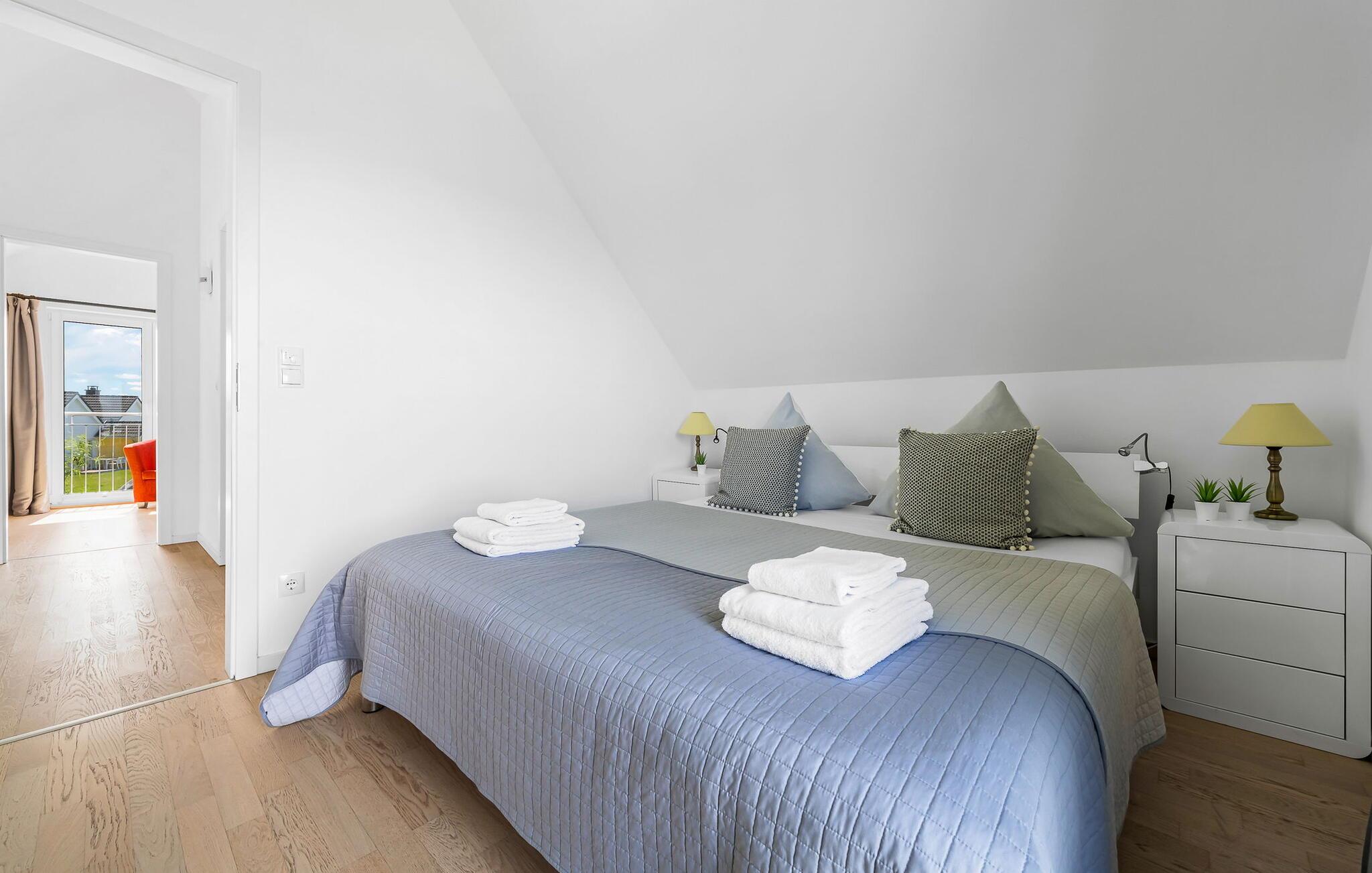 Das zweistöckige Haus bietet mehr als genug Platz für eure Familie. Neben zwei komfortablen Schlafzimmern lässt sich auch die Couch ganz schnell von einer bequemen Sitzangelegenheit in einen zusätzlichen Schlafplatz für zwei weitere Gäste verwandeln. Der lichtdurchflutete Wohnbereich eignet sich hervorragend für gemütliche Filmabende mit dem Smart TV oder auch den Genuss eines erlesenen Glas Wein vor dem Feuer des Kaminofens.