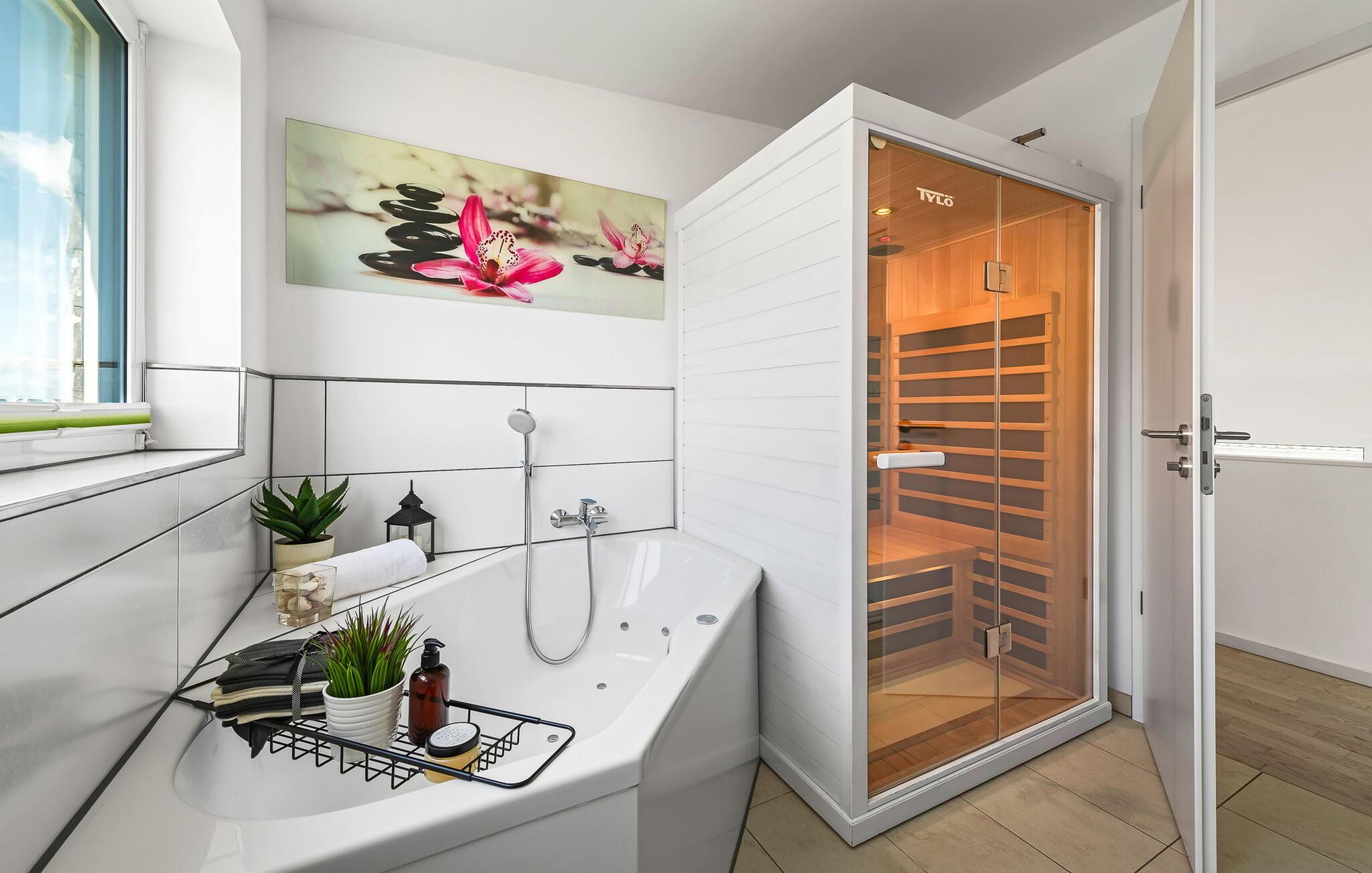 Nach einem ereignisreichen Tag solltet ihr euch auch unbedingt etwas Wellness gewähren und sich von der luxuriösen Whirlpool-Badewanne und der modernen InfrarotSauna (Wärmekabine) im Bad verwöhnen lassen.