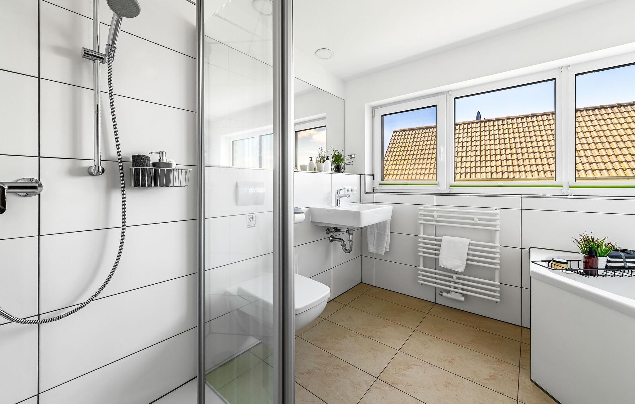 - WC mit warmem und kaltem Wasser, Dusche und Badewanne