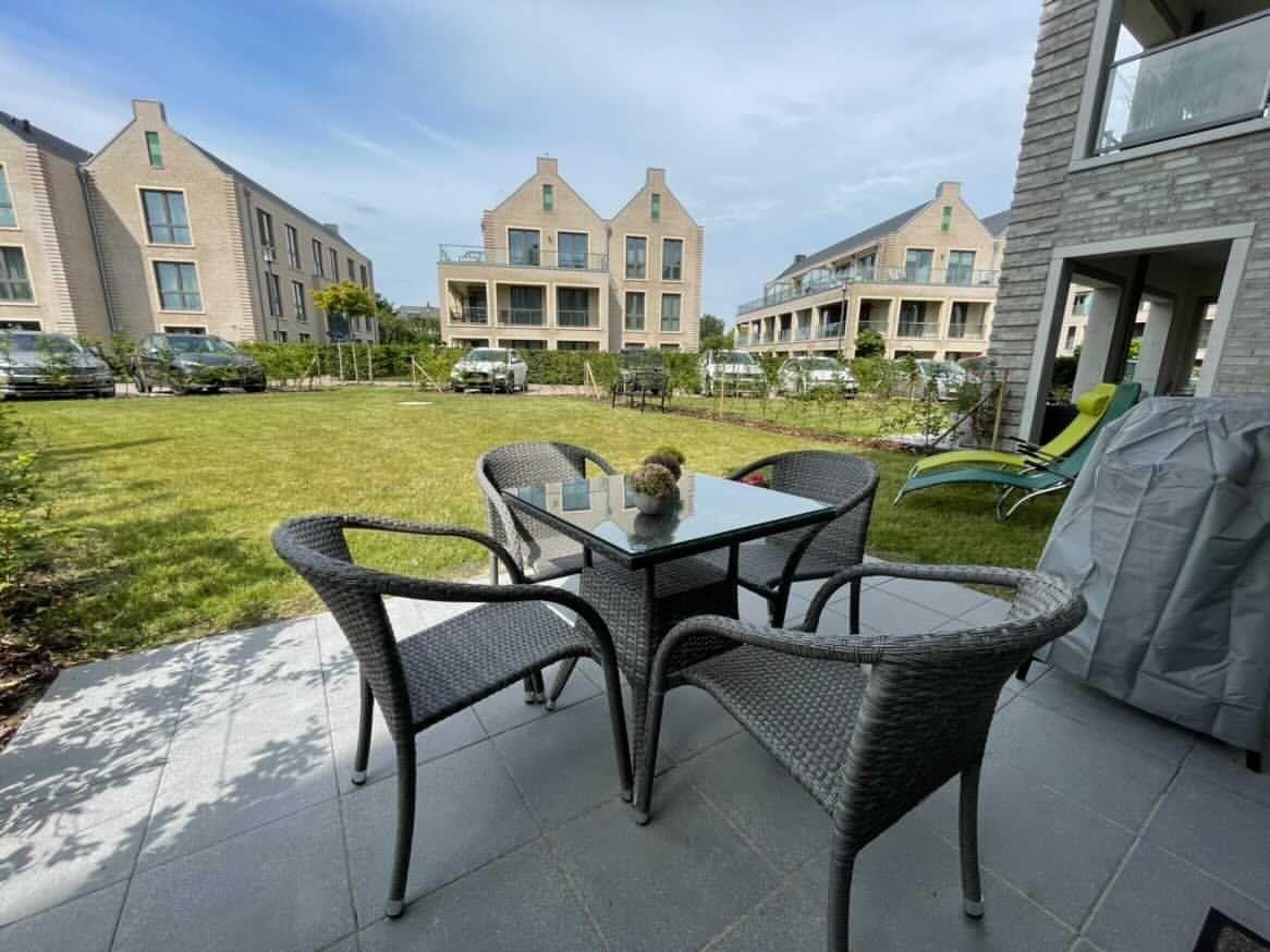 Modernes Apartment mit Garten und Strandkorb