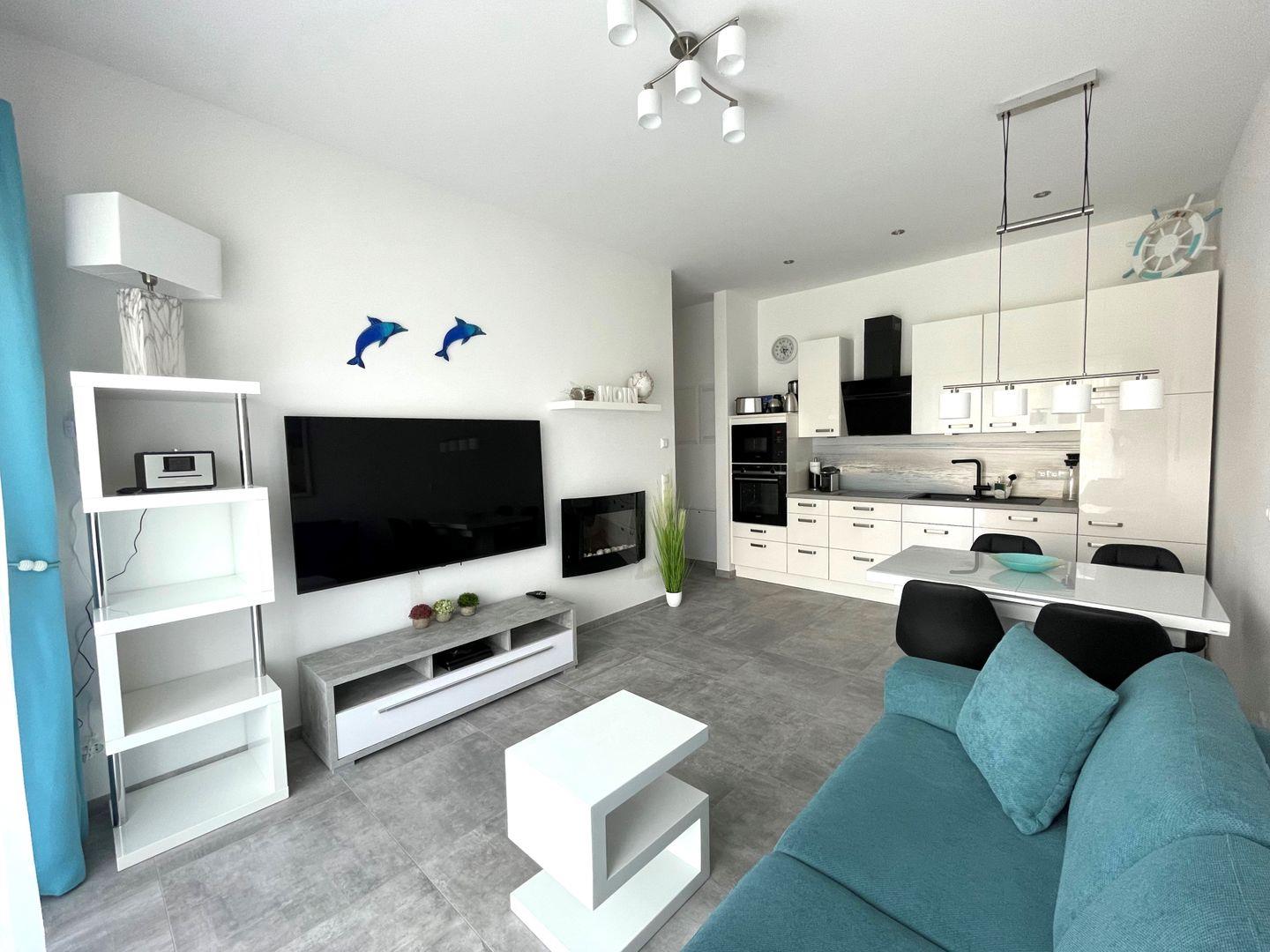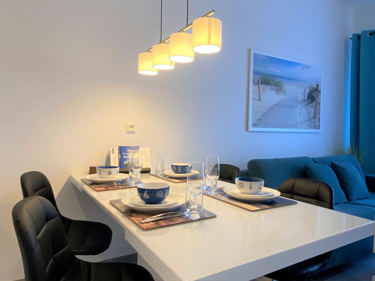 Genießen Sie ein lichtdurchflutetes, neues 2 Zimmer Apartment. Ihr kostenloser Strandkorb am Dangaster Sandstrand ist auch schon reserviert!