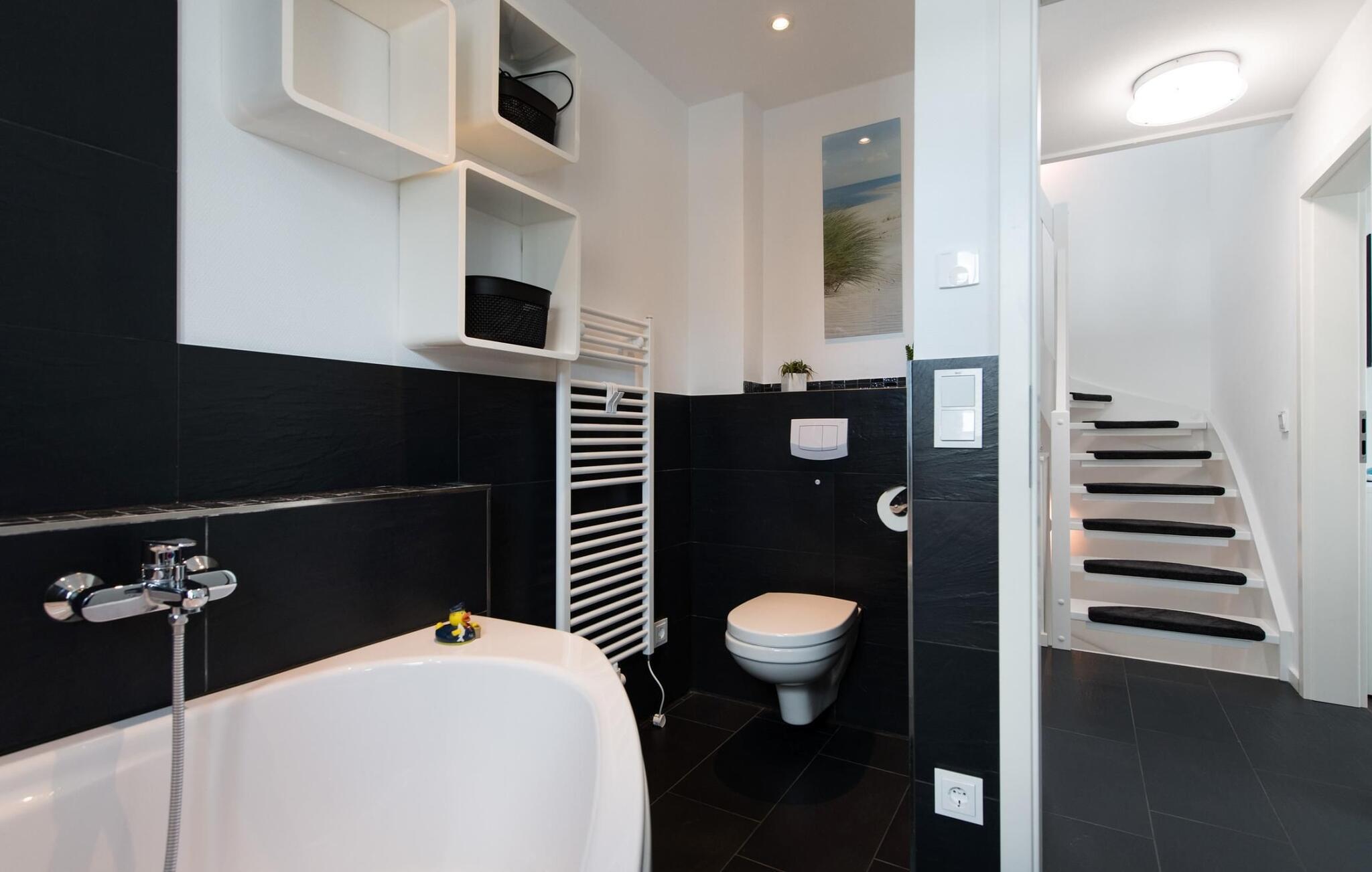 - WC mit warmem und kaltem Wasser, Dusche und Badewanne