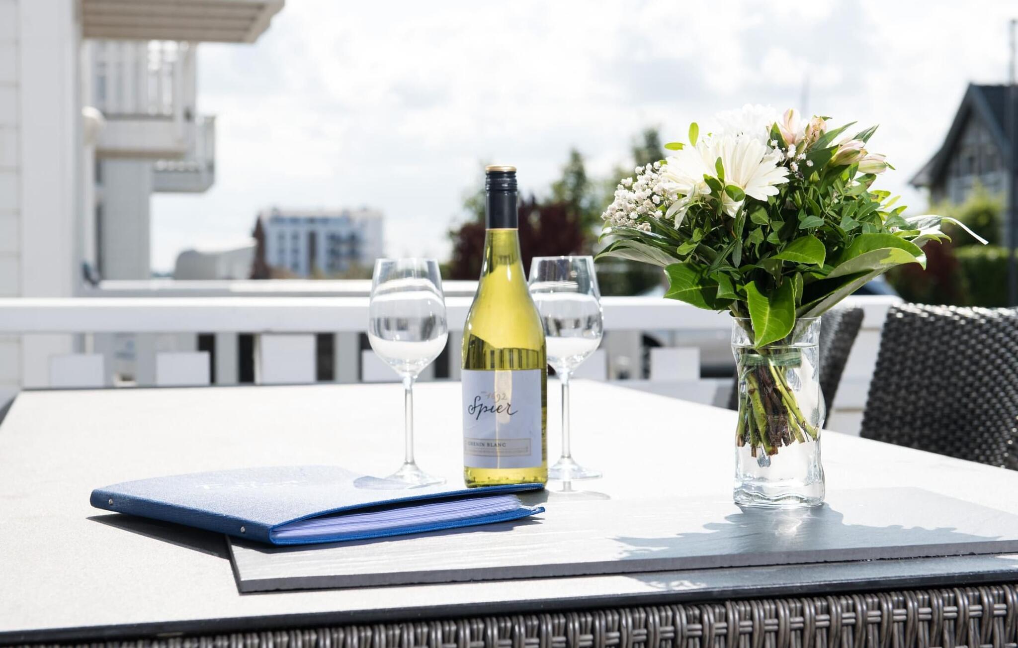 Süd-Westterrasse. Hier lassen sich gesellige Grillabende oder romantische Candle-Light-Dinners verbringen.