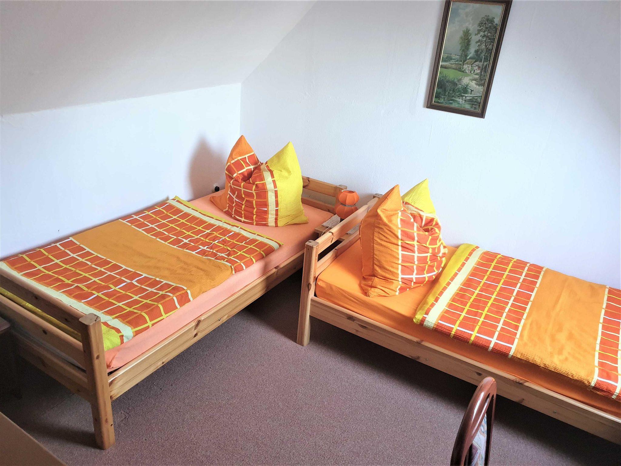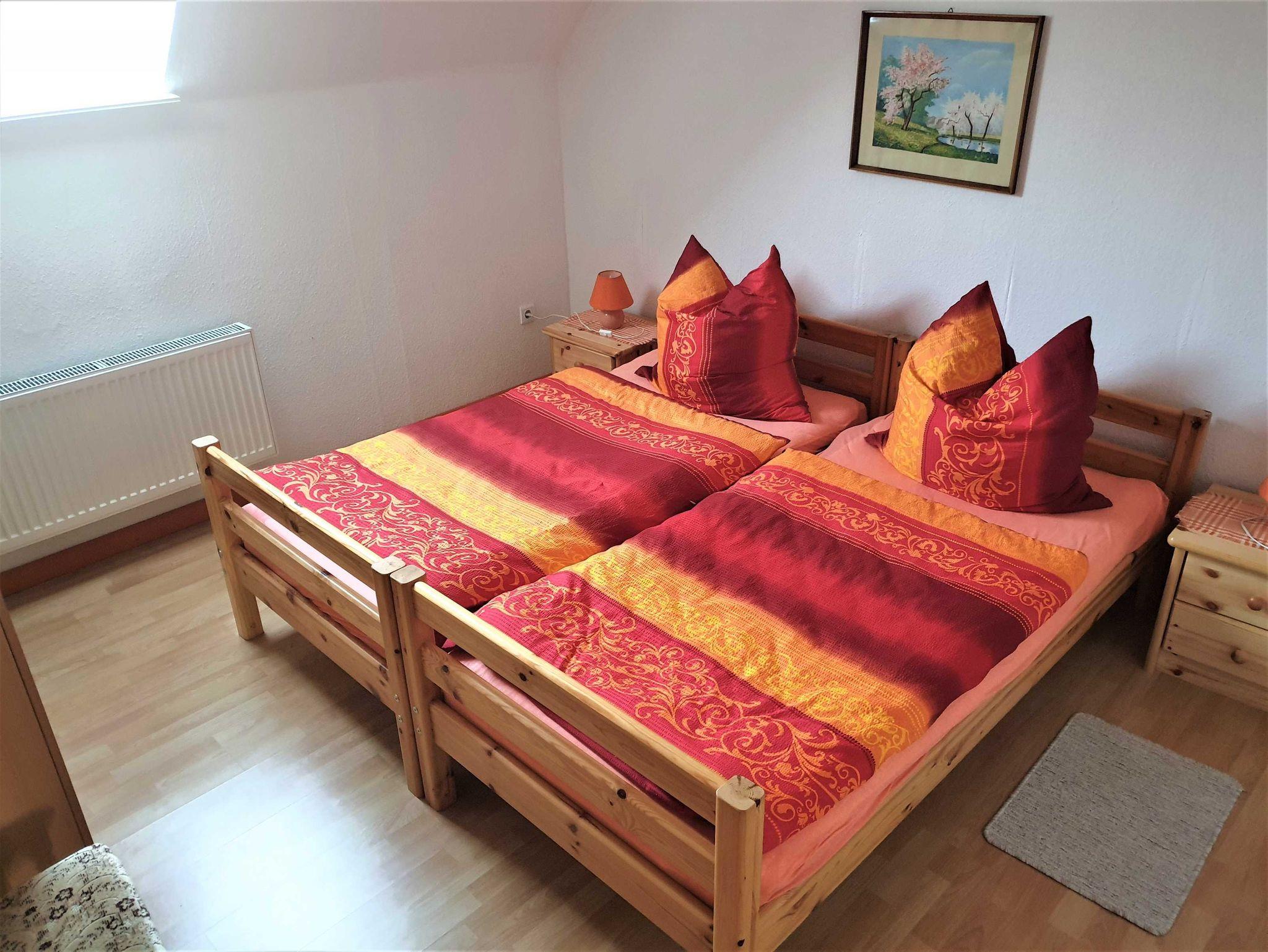 Einen zusätzlichen Wohnraum erreichen Sie innerhalb dieser Ferienwohnung (vom Wohnzimmer aus) über eine Treppe im 2. Obergeschoss. Dieser offene Schlafraum hat eine Größe von 10 m² (zwei Einzelbetten). Von hier aus haben Sie noch eine bessere Sicht ins Storchennest.
