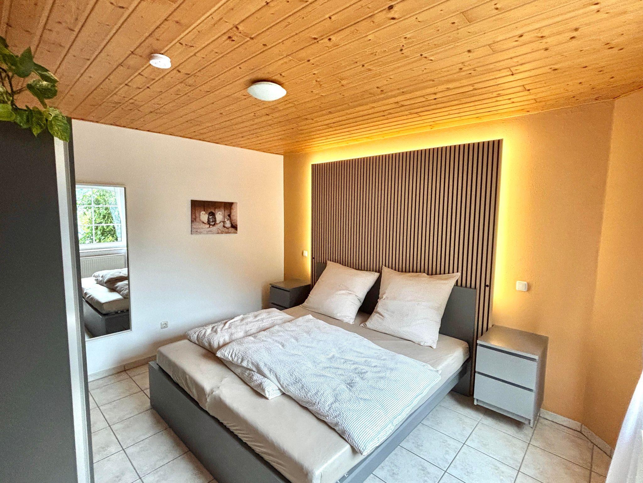 Die Ferienwohnung Eifelblick-Liesertal wurde in 2025 komplett neu renoviert und ebenfalls gemütlich und modern ausgestattet. Die Wohnfläche beträgt ca. 70 m² und es befinden sich in der Ferienwohnung zwei abgeschlossene Schlafzimmer mit Doppelbetten, ein großzügiges Wohnzimmer, eine voll ausgestattete Küche sowie ein Bad mit geräumiger Dusche.