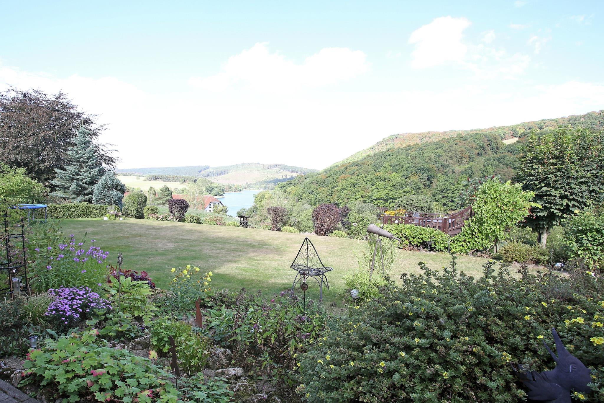 Diese charmante Ferienwohnung befindet sich im Erdgeschoss eines schönen Ferienhauses in der Nähe des Diemelsees und bietet von Ihrer privaten Terrasse aus einen einzigartigen und atemberaubenden Blick auf den See und die umliegende Landschaft. Eingebettet in eine atemberaubende Naturlandschaft ist Heringhausen das einzige Dorf direkt am Diemelsee, umgeben von sanften Bergen, friedlichen Tälern, saftigen Wiesen und dichten Wäldern. Die Gegend ist ein wahres Paradies für Naturliebhaber und Outdoor-Fans. Genießen Sie Schwimmen, Segeln und Surfen auf dem See, der auch als Angelparadies bekannt ist. Für alle, die Abenteuer an Land bevorzugen, gibt es in dieser malerischen Region zahlreiche Wander-, Reit- und Radwege. Die ruhige Lage in Kombination mit der wunderschönen Landschaft garantiert ein erholsames und erholsames Urlaubserlebnis. Zu den weiteren Annehmlichkeiten gehört die gemeinsame Nutzung der Waschmaschine mit dem Eigentümer, was Ihren Aufenthalt noch komfortabler macht. Ob Sie Entspannung oder Aktivität suchen, diese Wohnung ist der ideale Ausgangspunkt für einen unvergesslichen Urlaub.
