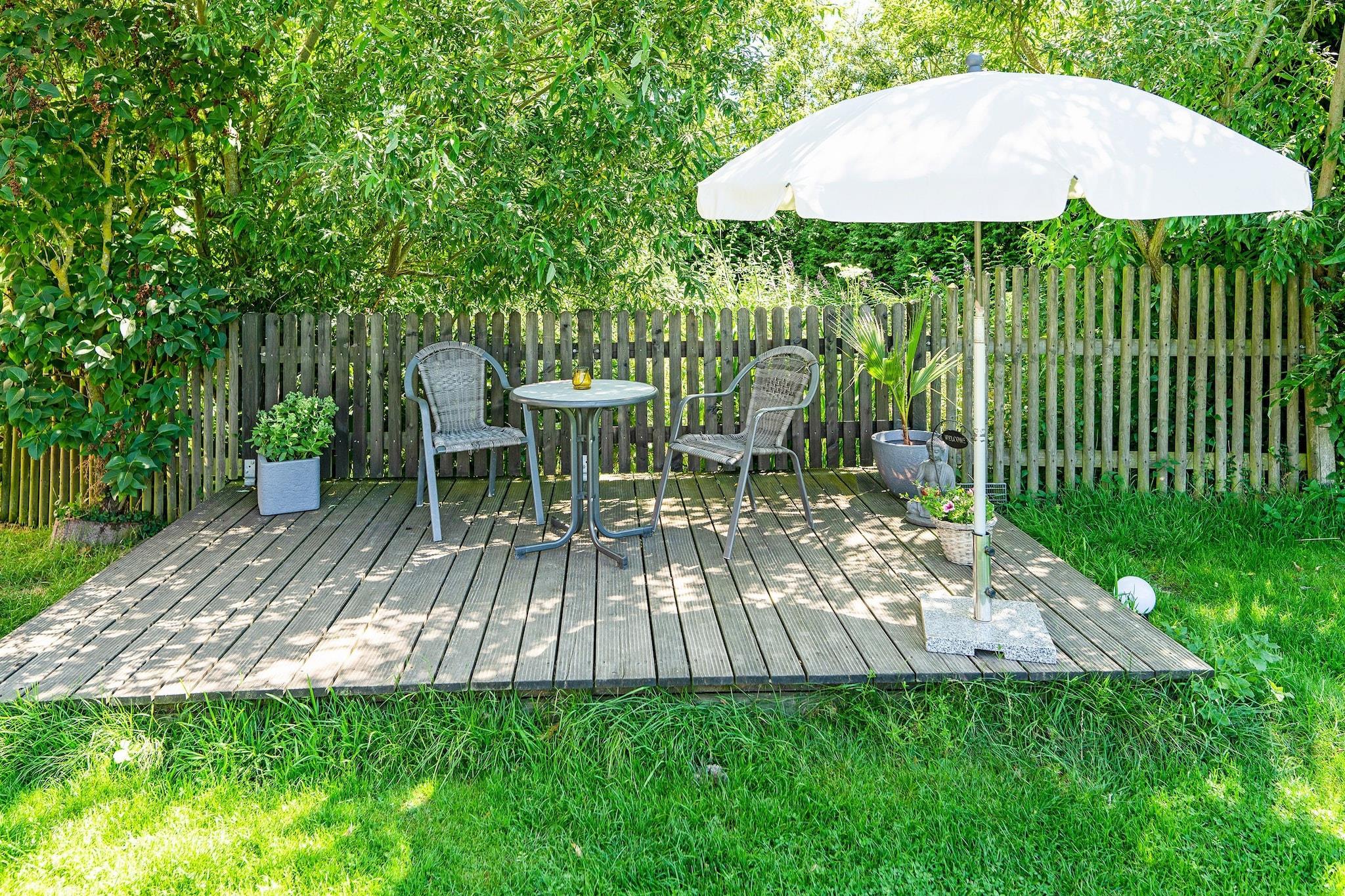 Parterre: (Eingang, Diele, Küche(Wasserkocher, Toaster, Kochherd(4 Kochplatten, Ceranfeld, elektrisch), Kaffeemaschine(cups, Filter, pads), Backofen, Mikrowelle, Kühlschrank, Tiefkühlschrank), Wohn/Esszimmer(TV(Flatscreen, Satellit), DVD-Spieler, CD-Spieler, Stereoanlage)) In der 1. Etage: (Durchgangsschlafzimmer(Etagenbett), Kinderzimmer(Schlafcouch 1 Pers.(80 x 180 cm), Doppelbett), Badezimmer(Dusche, Waschbecken, Toilette, Föhn)) Trockner, Babybett, Waschmaschine(Gemeinschaftliche Nutzung mit anderen Gästen), Heizung(Zentral), Terrasse(alleinige Nutzung, 20 m2), Garten(alleinige Nutzung, umzäunt, 640 m2), Fahrradabstellraum, Gartenmöbel, Grill(Holzkohle), Parkplatz, Teich, Liegestühle, Sonnenschirm, Fußballtor, Hochstuhl, Bügeleisen, Gesellschaftsspiele, Fliegenfenster