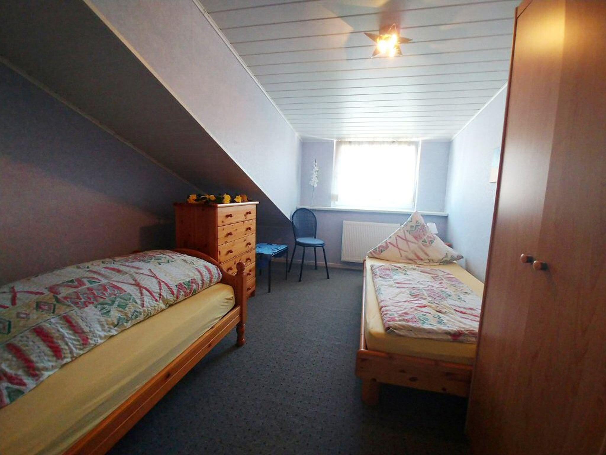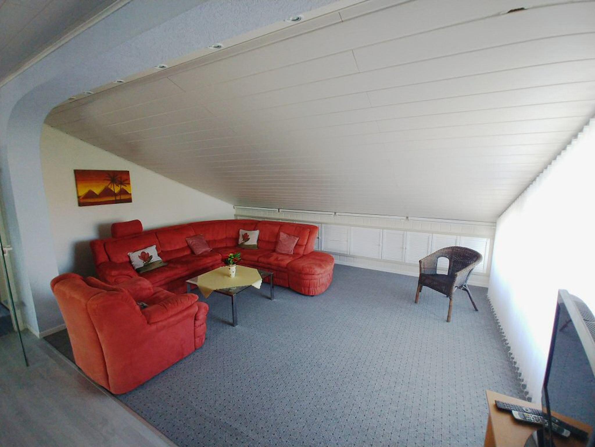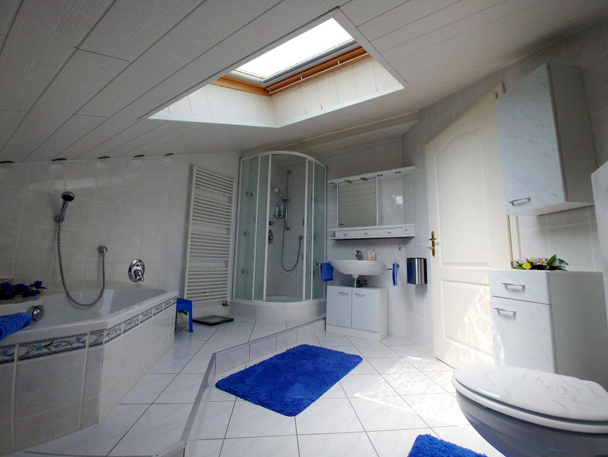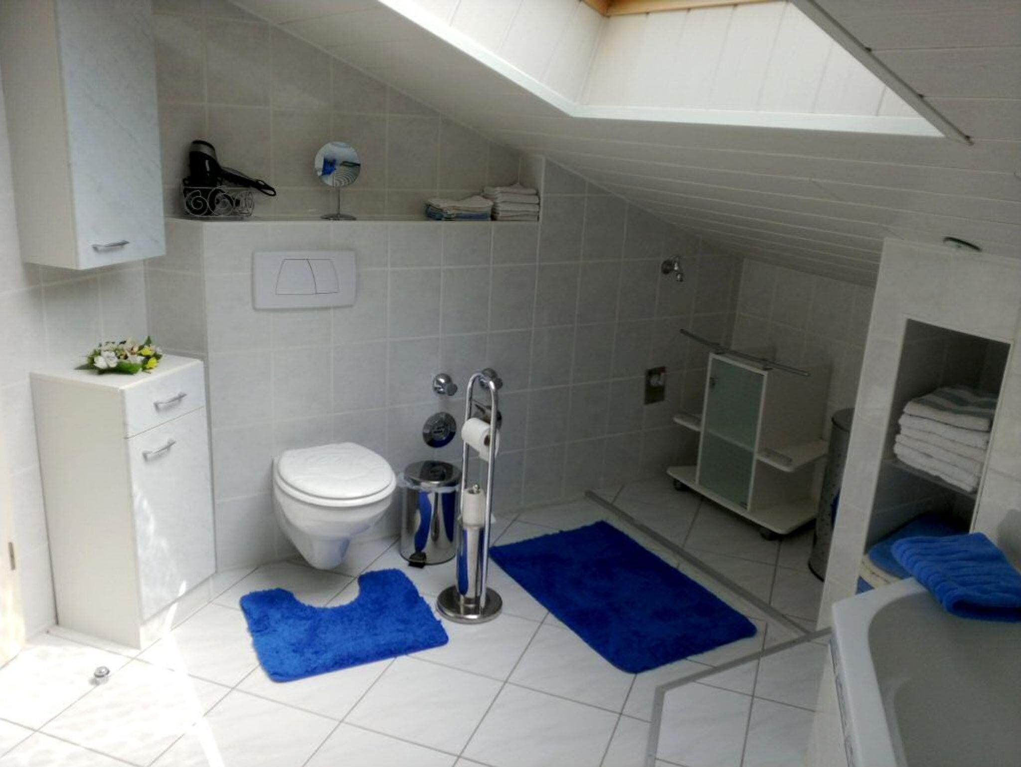 Unsere helle und freundliche Ferienwohnung im Dachgeschoss ist modern ausgestattet mit TV sowie kostenfreiem WLAN und besteht aus zwei Schlafzimmern (ein Zweibettzimmer und ein Dreibettzimmer), einem großen Tageslichtbad mit WC, Eckbadewanne mit Stimmungslicht, Dusche und Handtuchwärmer, einem Gäste-WC mit Tageslicht, einem sehr großzügigen Wohn-/Esszimmerbereich mit offener voll ausgestatteter Küche und einem separaten Vorratsraum.