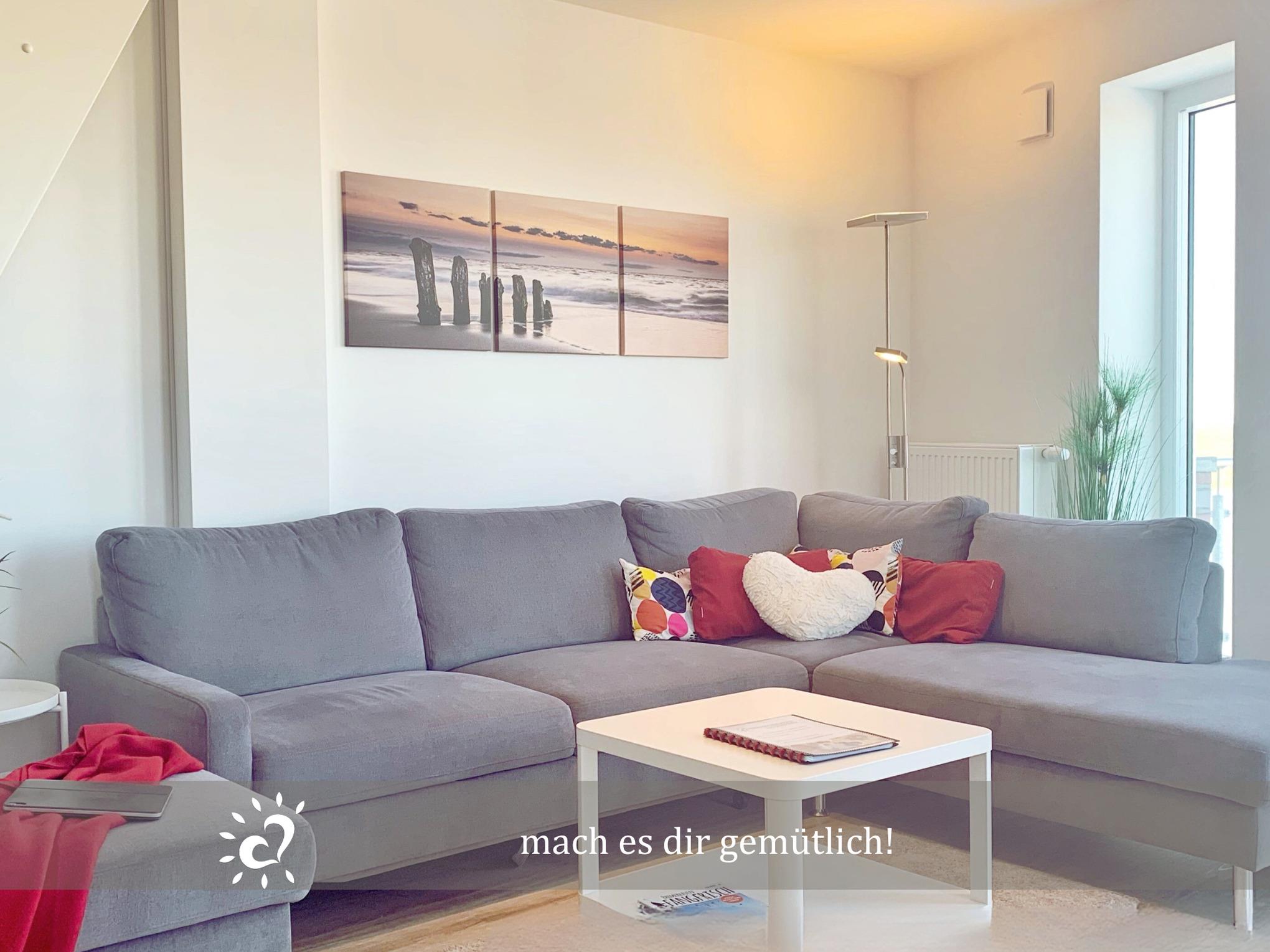 Das Penthouse bietet zwei komfortable Schlafzimmer für erholsamen Schlaf und viel Privatsphäre sowie einen großzügigen, lichtdurchfluteten Wohnbereich. Große Fensterfronten machen den Meerblick zum zentralen Erlebnis und lassen die Nordsee förmlich ins Wohnzimmer strömen.