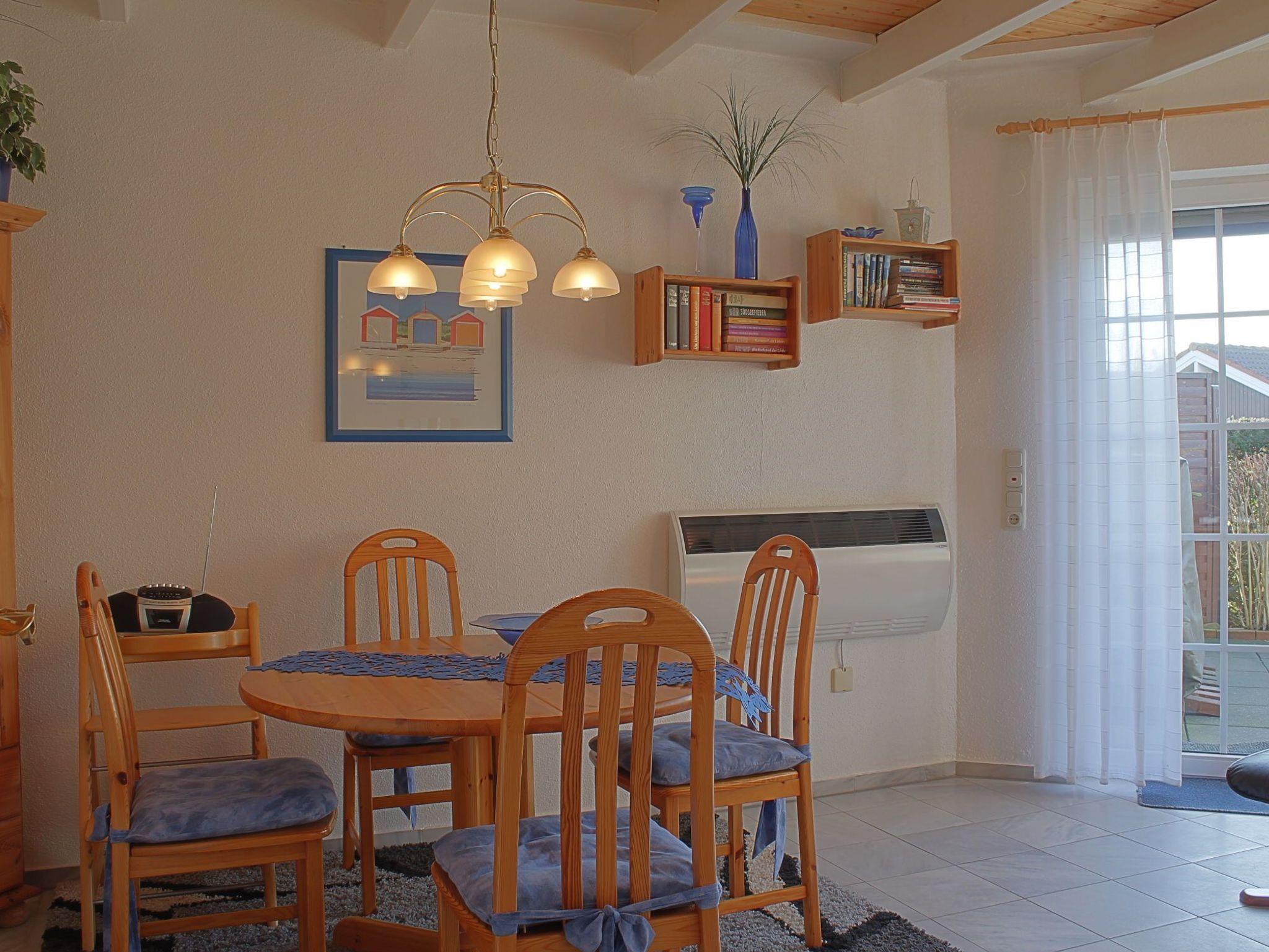 Dieses gemütlich eingerichtete Haus verfügt über einen Wohnbereich mit Flachbild-TV, Sitzecke, Essplatz und separater Küche mit E-Herd mit Backofen, Kühlschrank mit Gefrierfach, Kaffemaschine, Toaster, Mikrowelle, Waschmaschine und komplettem Geschirr. überdachte Terrasse mit Strandkorb, Grill und Gartenhaus mit Fahrrädern(keine Kinderfahrräder) stehen unseren Gästen zur Verfügung. Ein kleiner Hund darf mitreisen. Kostenloses W-Lan gibt es natürlich auch.
