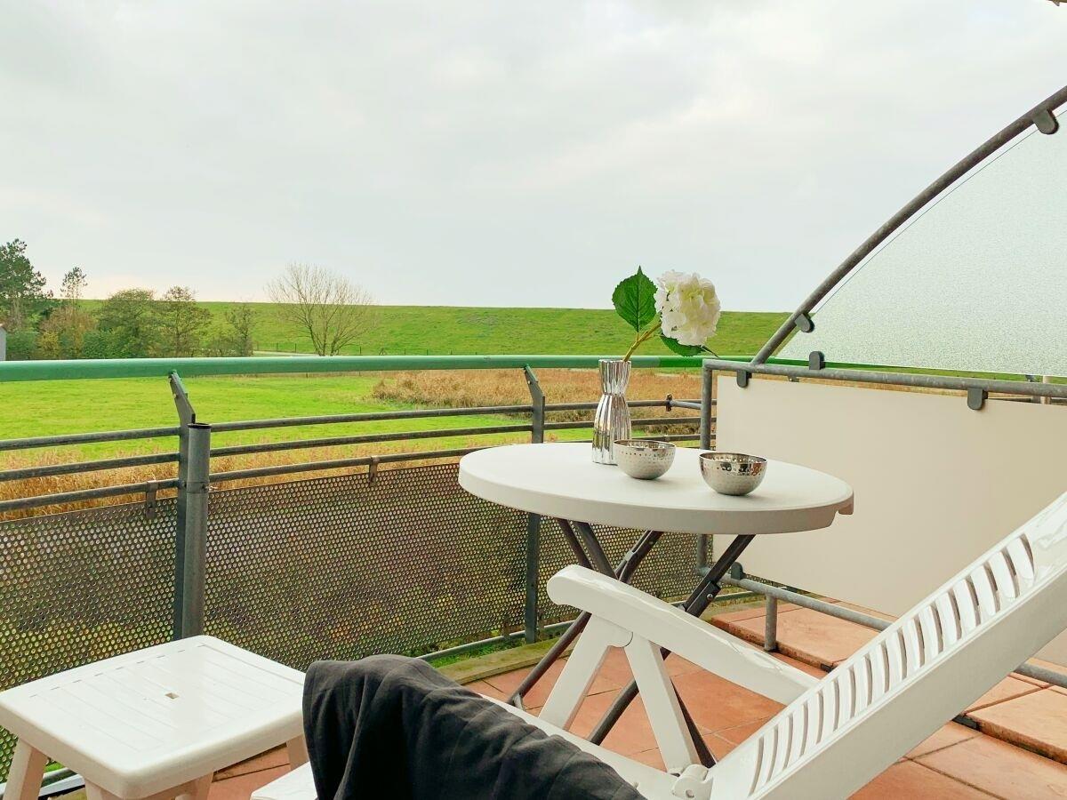 Von dem schönen Sonnenbalkon aus blicken Sie direkt auf den Deich und können die Weite der Natur genießen. Die Wohnung ist mit elektrischen Rolläden ausgestattet, zusätzlich befindet sich im Wohn- und Schlafzimmer ein praktisches Fliegengitter.
