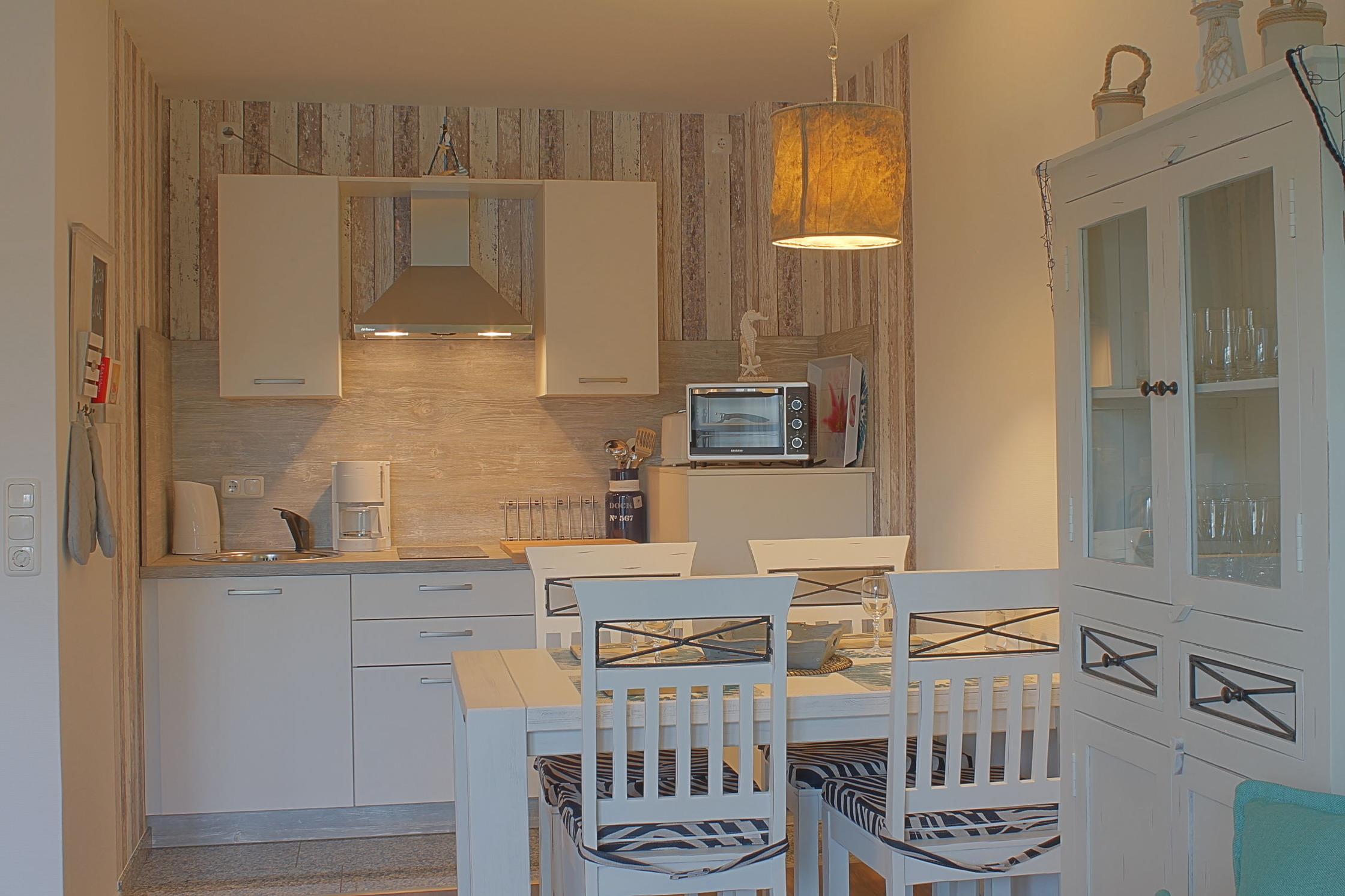 Nur 300 m vom Meer entfernt liegt diese gepflegte Appartementanlage. Komfortabel ausgestattete in 2015 komplett renovierte Nichtraucher- Ferienwohnung mit einem Schlafraum mit Doppelbett (1,60 x 2,00 m) und Stockbett für die Kinder. Küchenzeile mit Essplatz und Wohnraum mit Ausgang zur Terrasse. Die Küchenzeile ist mit allem eingerichtet, was man so braucht. Vom Geschirrspüler, über Kaffeemaschine bis zum Toaster ist alles vorhanden. Münzwaschautomaten und Trockner befinden sich im Haus. Das Wohnzimmer ist modern und bequem eingerichtet. Auch hier fehlt nichts! Flachbild-TV[nbsp]können Sie kostenfrei benutzen, damit Sie im Urlaub auf nichts verzichten müssen. Fliegentüren vor den Terrassentüren sorgen für Insektenfreie Zone, Allergiker geeignet durch Designfußbodenbeläge. Haustiere sind nicht erwünscht. Das Wellenbad mit Riesenrutsche und vielen weiteren Attraktionen ist in wenigen Minuten zu Fuß zu erreichen.
