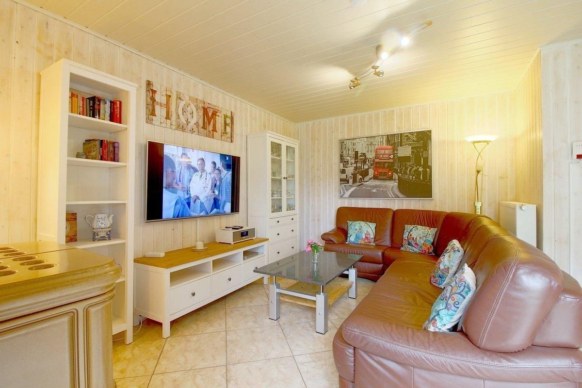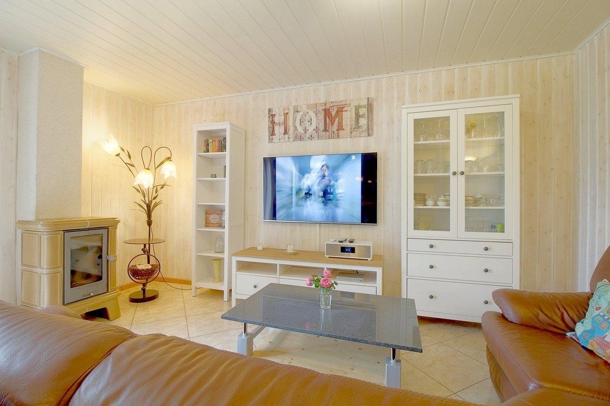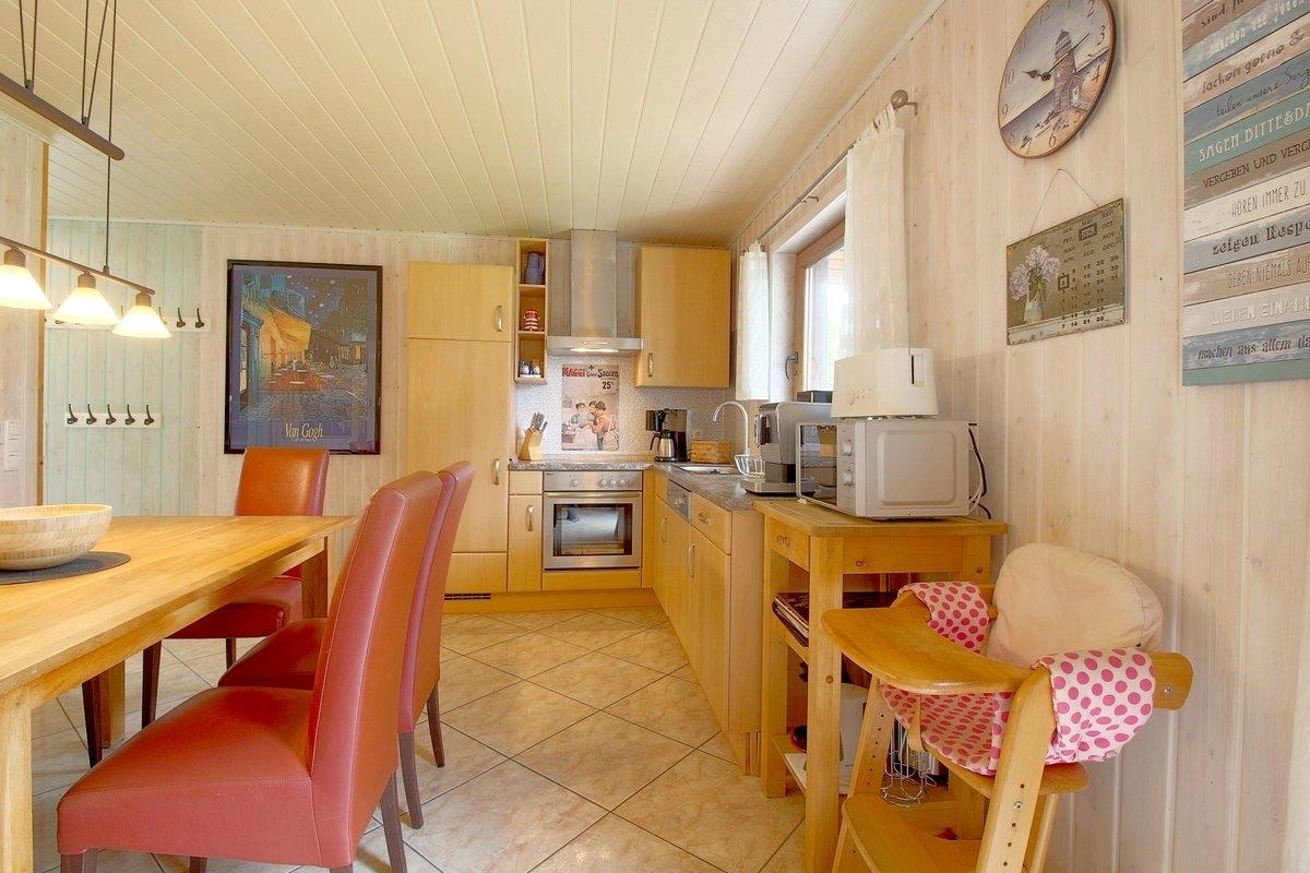 Im Wohn- Ess- und Küchenbereich mit Ausgang zur sonnigen Terrasse und Garten finden Sie Flachbildfernseher, Internetradio/CD und einen Bluray Player, sowie den Kamin. Das Haus bietet ausreichend Platz für die ganze Familie. In der Küche finden sie einen Kaffeevollautomaten