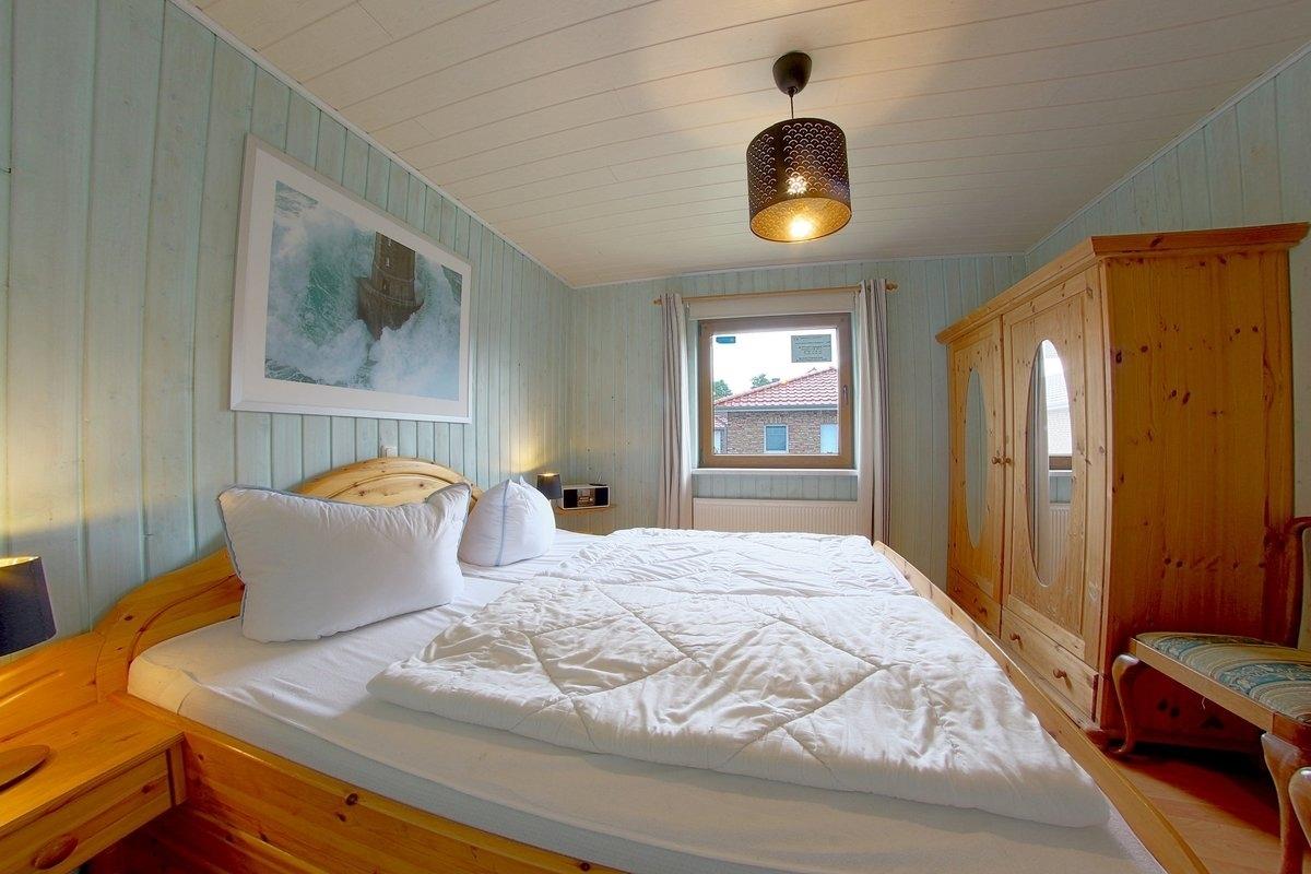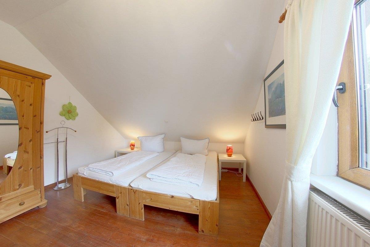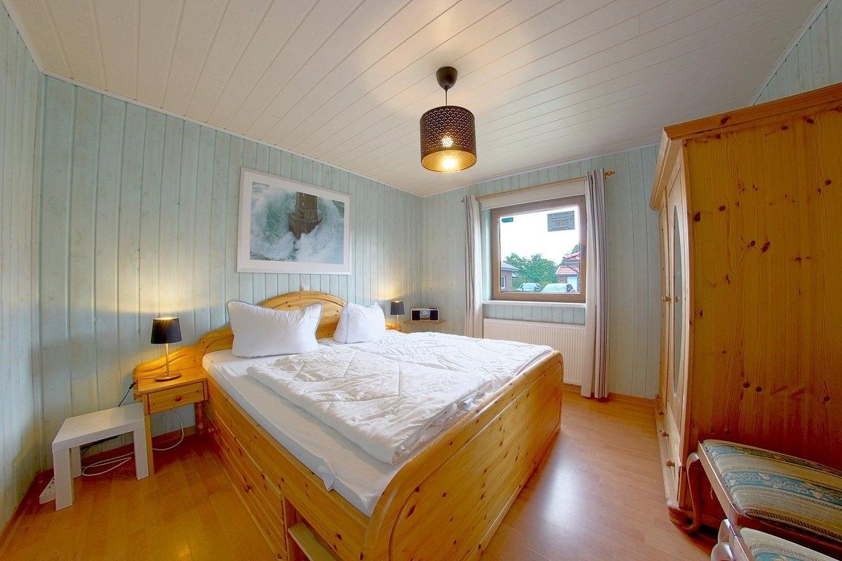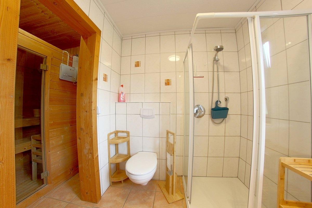 Im EG befindet sich ein Schlafzimmer mit Doppelbett und Internetradio und ein Bad mit Sauna mit Münzeinwurf. Alle Schlafzimmer und die Terrassentür haben Insektenschutz.
