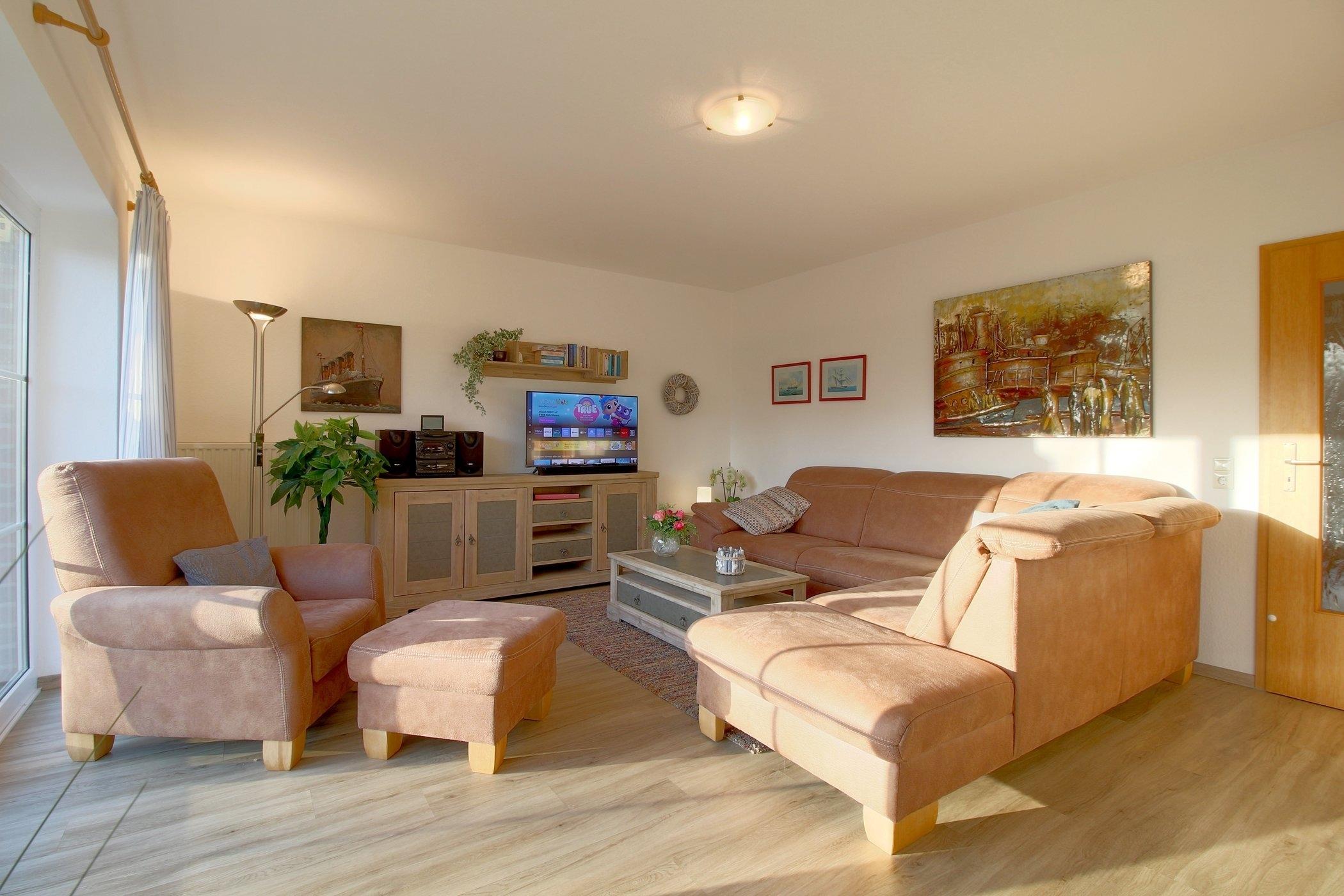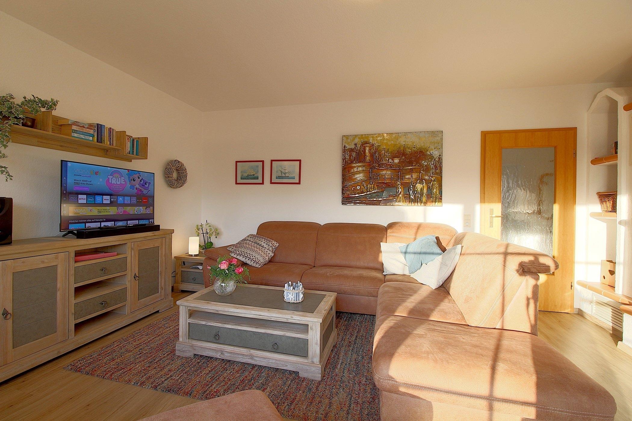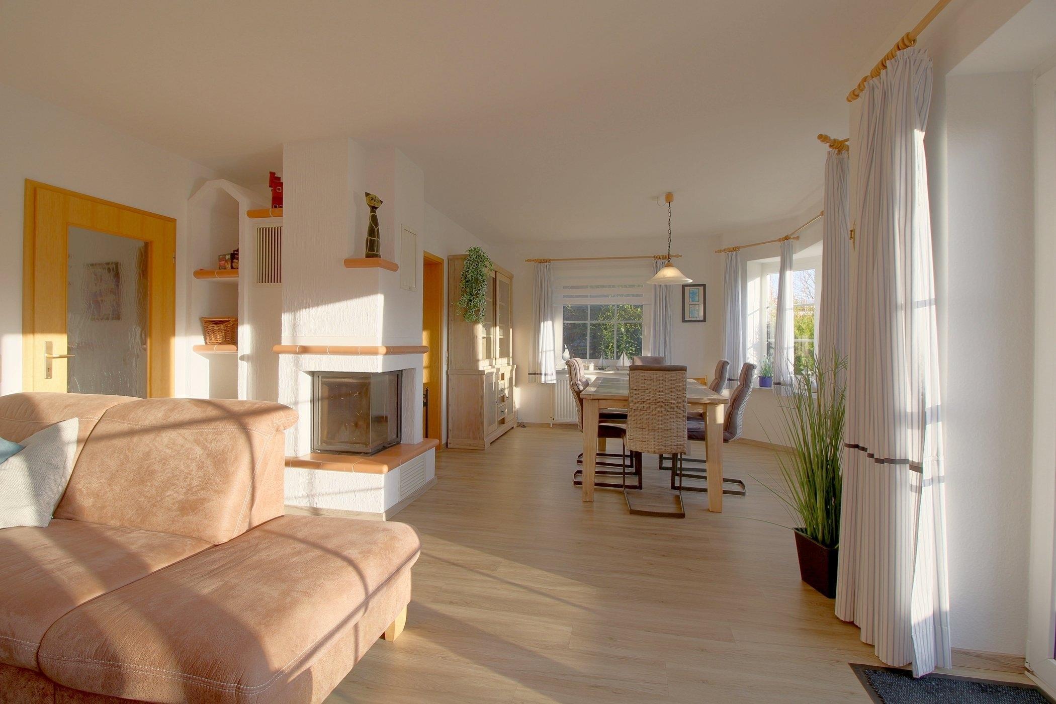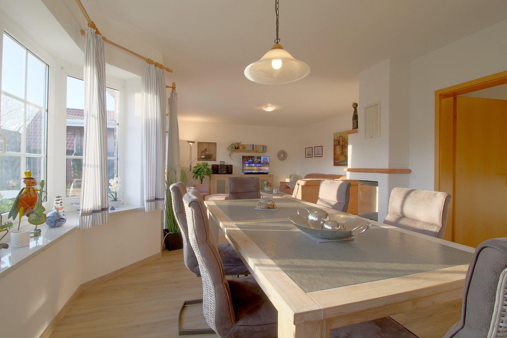 Der großzügige, Wohn- und Essbereich mit Ausgang zur Terrasse bietet Platz für die ganze Familie zum Beisammensein. Kamin und großer Flat TV, sowie kostenloses W-LAN sind selbstverständlich vorhanden.