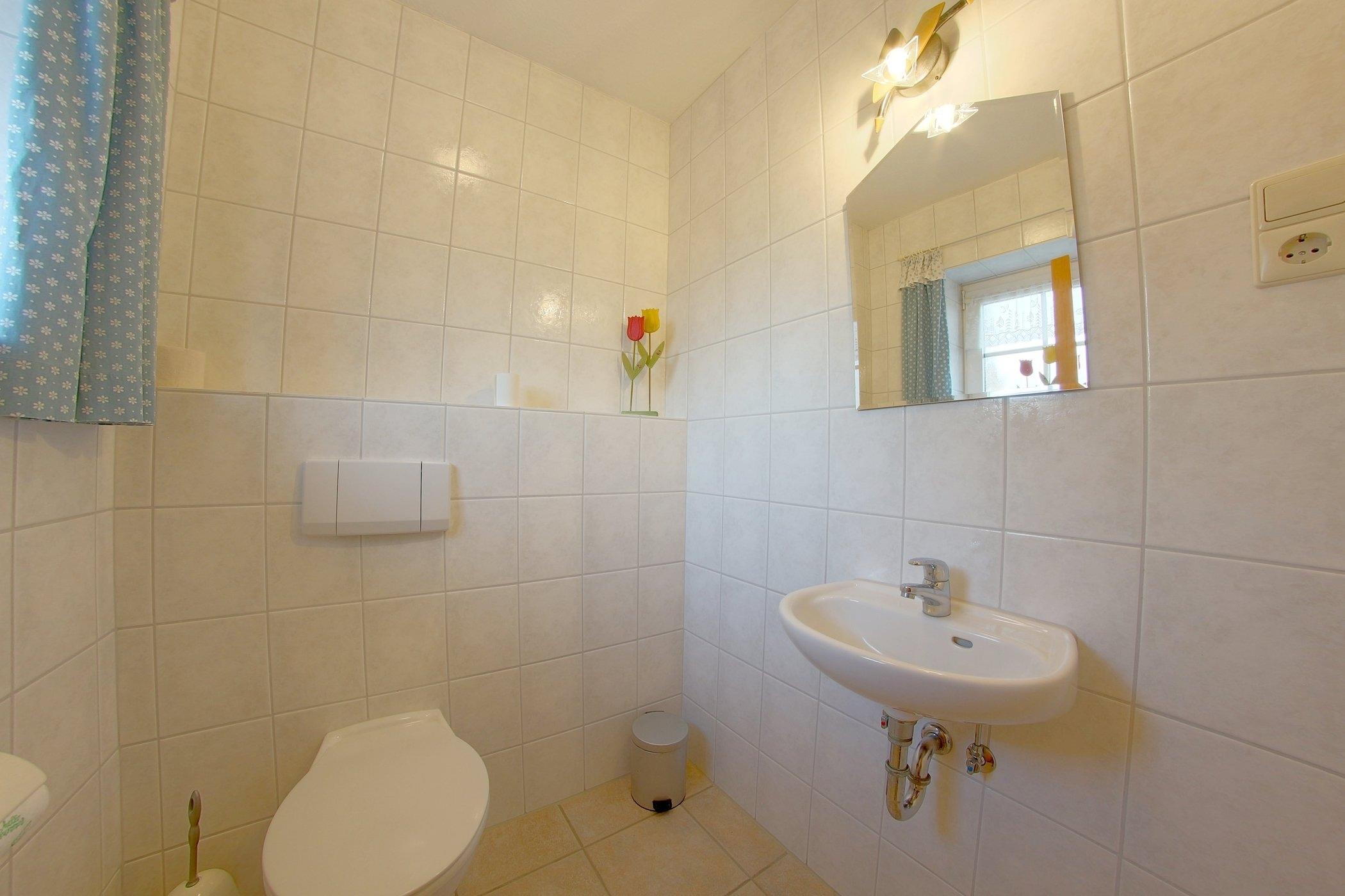 Ein WC im Erdgeschoß und ein Vollbad im Obergeschoß, Waschmaschine, Kinderbett und Hochstuhl stehen für unsere Gäste bereit.