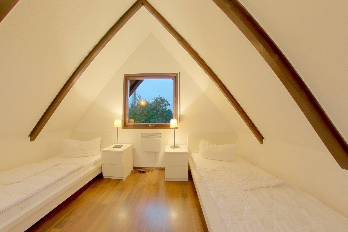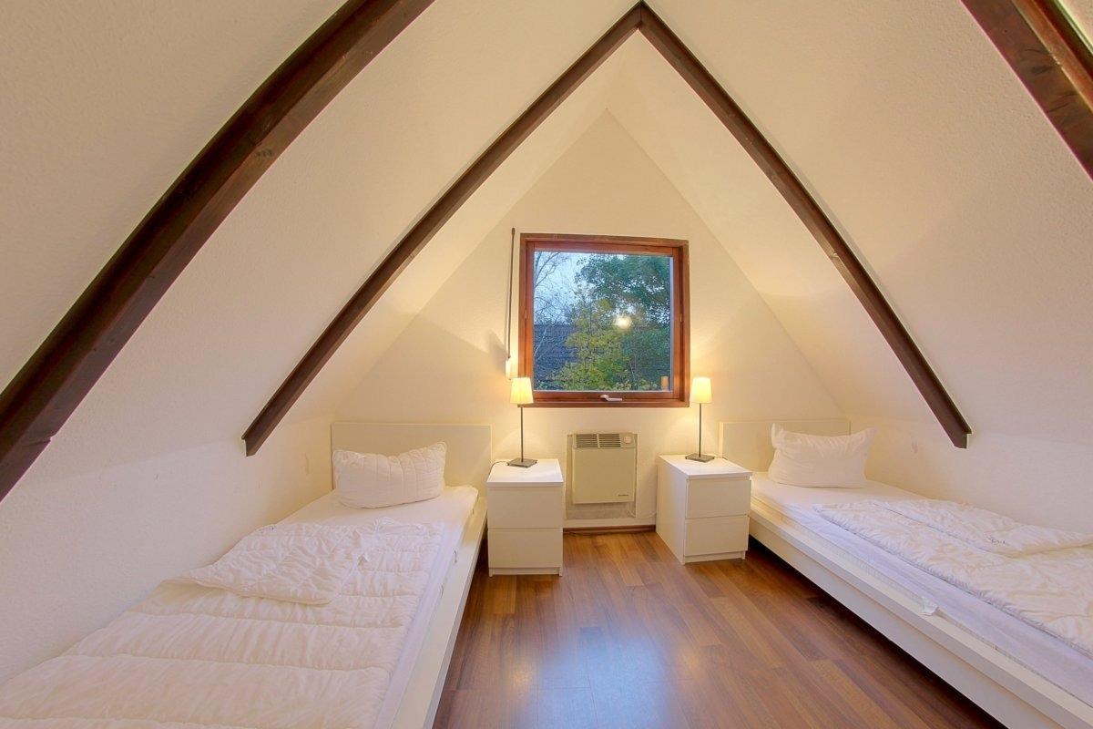 Zwei weitere Schlafzimmer mit Einzelbetten stehen im oberen Bereich zur Verfügung, somit ein ideales Ferienhaus für die Familie mit 3 - 4 Kindern. Wann kommen Sie zu uns an die Nordsee?