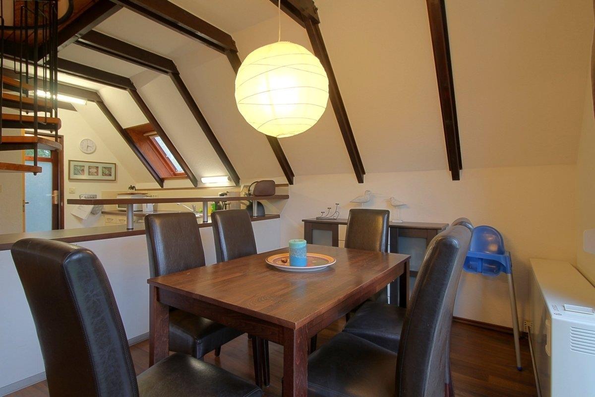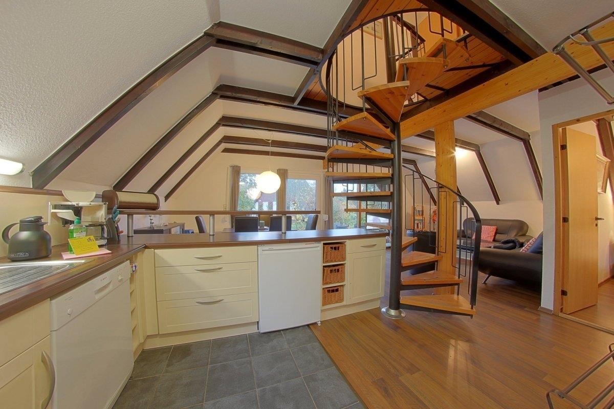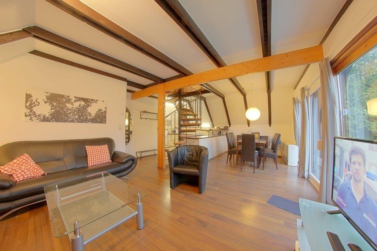 Wohn-, Ess- und Küchenbereich, ein Schlafzimmer mt Doppelbett, sowie ein modernisiertes Duschbad befinden sich im Erdgeschoss. Wohnbereich mit Flat-TV, und direktem Ausgang zur Terrasse. Absosfort steht Ihnen auch kosenloses W-Lan zur Verfügung