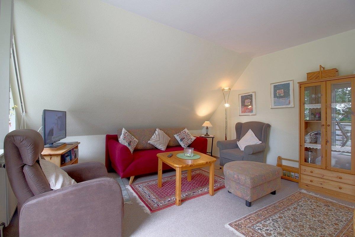 Das Wohnzimmer ist gemütlich eingerichtet. Auch hier fehlt nichts! Fernseher und Radioanlage vorhanden.