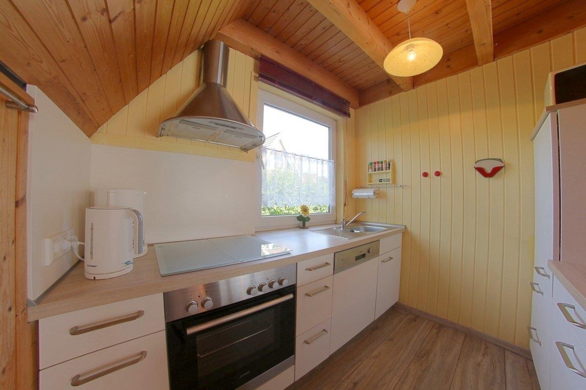 Im Erdgeschoss befindet sich das Wohnzimmer mit Küche, das Bad und ein kleiner Abstellraum.