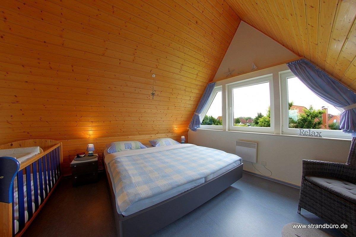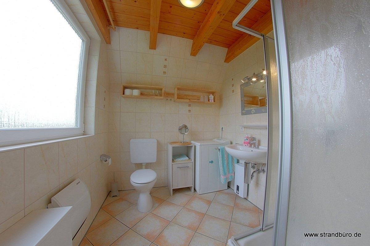 Ein Schlafzimmer mit Doppelbett und Gitterbett für die Kleinen, sowie ein Schlafzimmer mit zwei Einzelbetten, ebenso ein helles, modernisiertes Duschbad mit zusätzlicher Fußbodenheizung stehen Ihnen hier im Haus zur Verfügung.