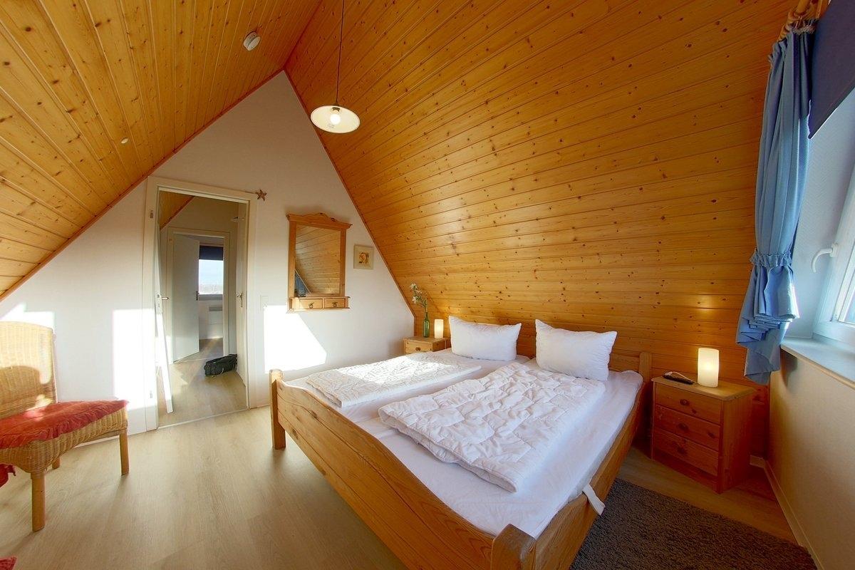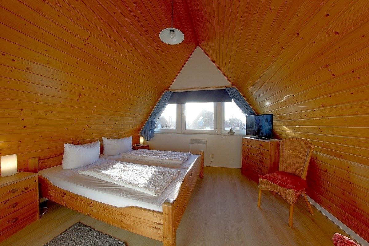 Das erste Schlafzimmer enthält ein Ehebett, ein TV und eine Kommode. Außerdem befindet sich im ersten Schlafzimmer noch ein Kinderreisebett, dass dort problemlos aufgestellt werden kann.