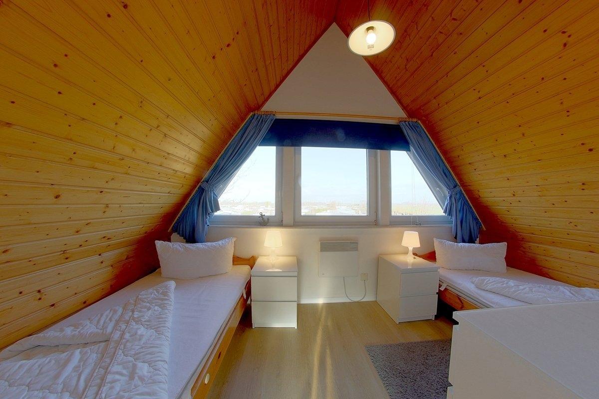 Im zweiten Schlafzimmer befinden sich zwei Einzelbetten. Vinylböden in den Schlafzimmern. Auch im Obergeschoss befindet sich eine Toilette.