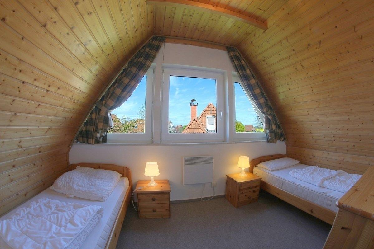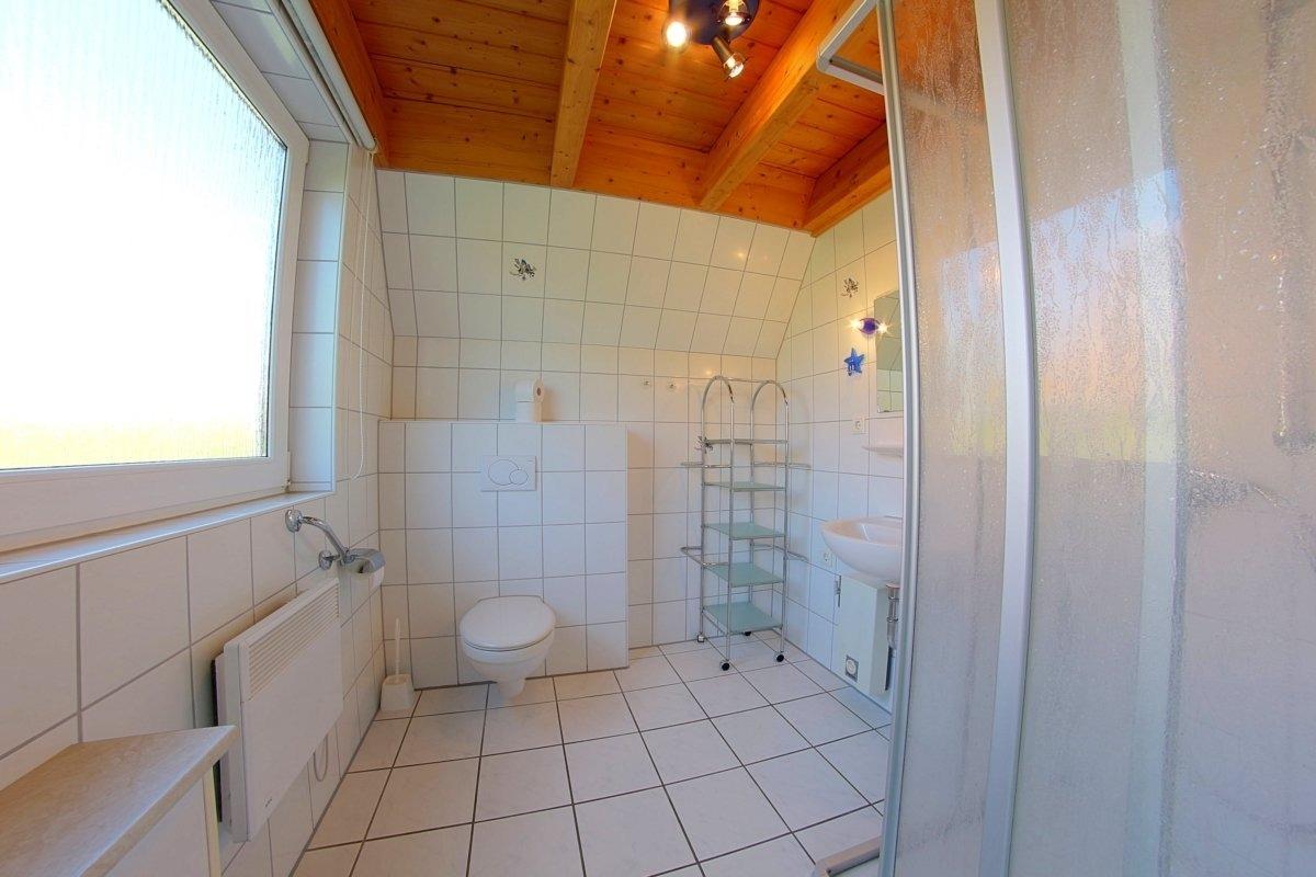 Ein Schlafzimmer mit Doppelbett und Babyreisebett, sowie ein Schlafzimmer mit zwei Einzelbetten und ein helles Duschbad mit Waschmaschine stehen Ihnen hier im Haus zur Verfügung. Die Schlafräume sind mit Teppichboden ausgestattet.