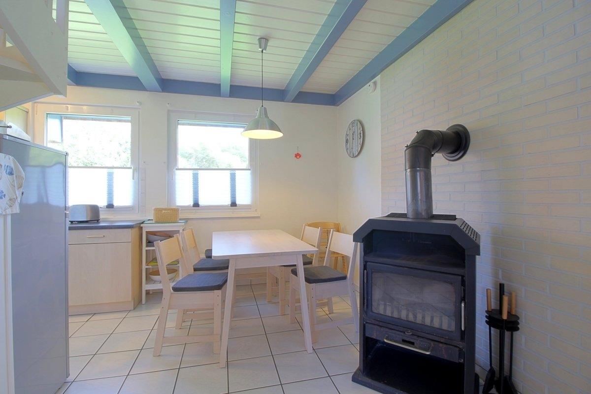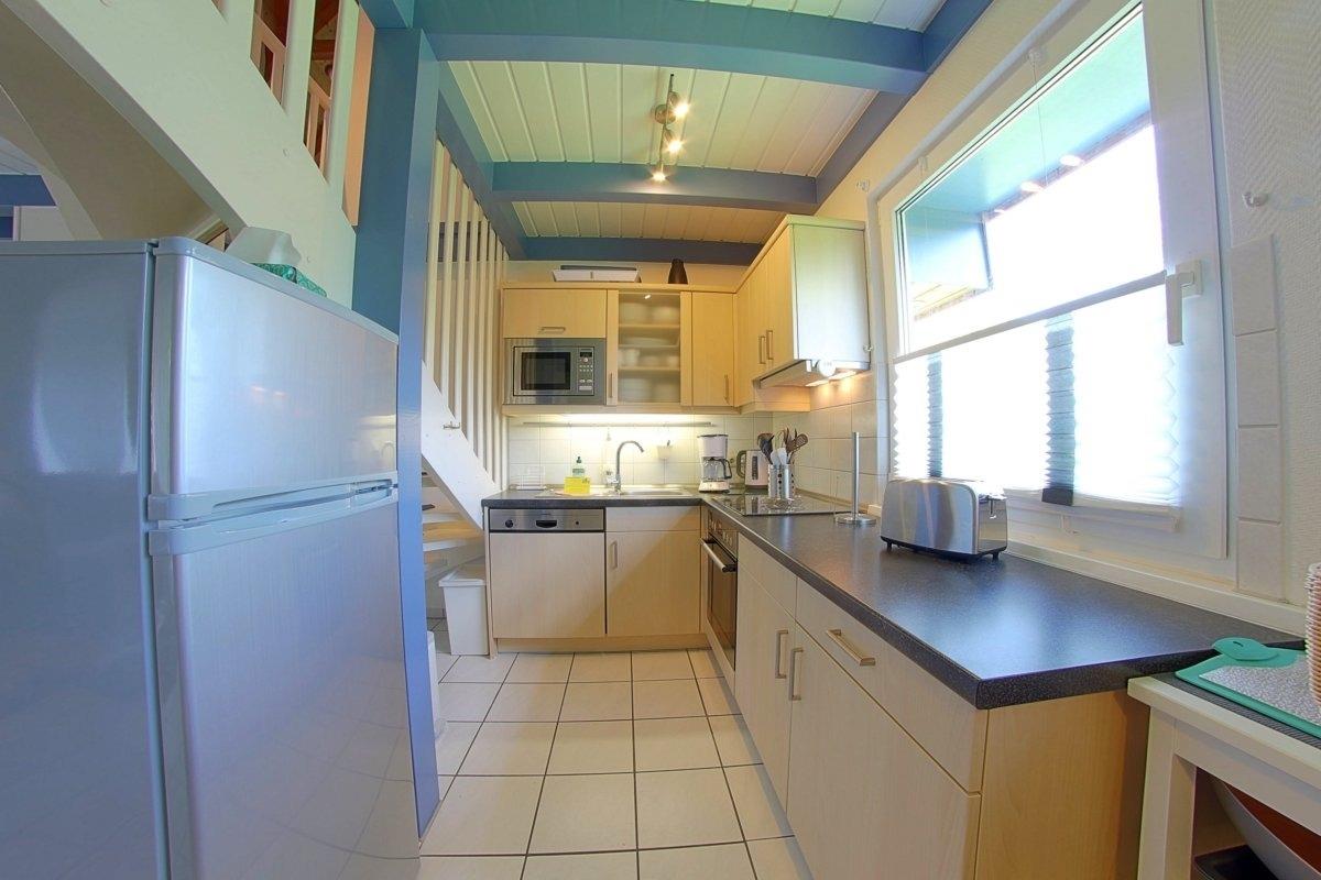Die Küche ist mit allen notwendigen Geräten und Utensilien wie z.B. Kühlschrank mit Gefrierfach, Spülmaschine, 4-Platten-Herd mit Backofen, Mikrowelle, Kaffeemaschine, Toaster, Wasserkocher, Koch- und Essgeschirr etc. ausgerüstet.